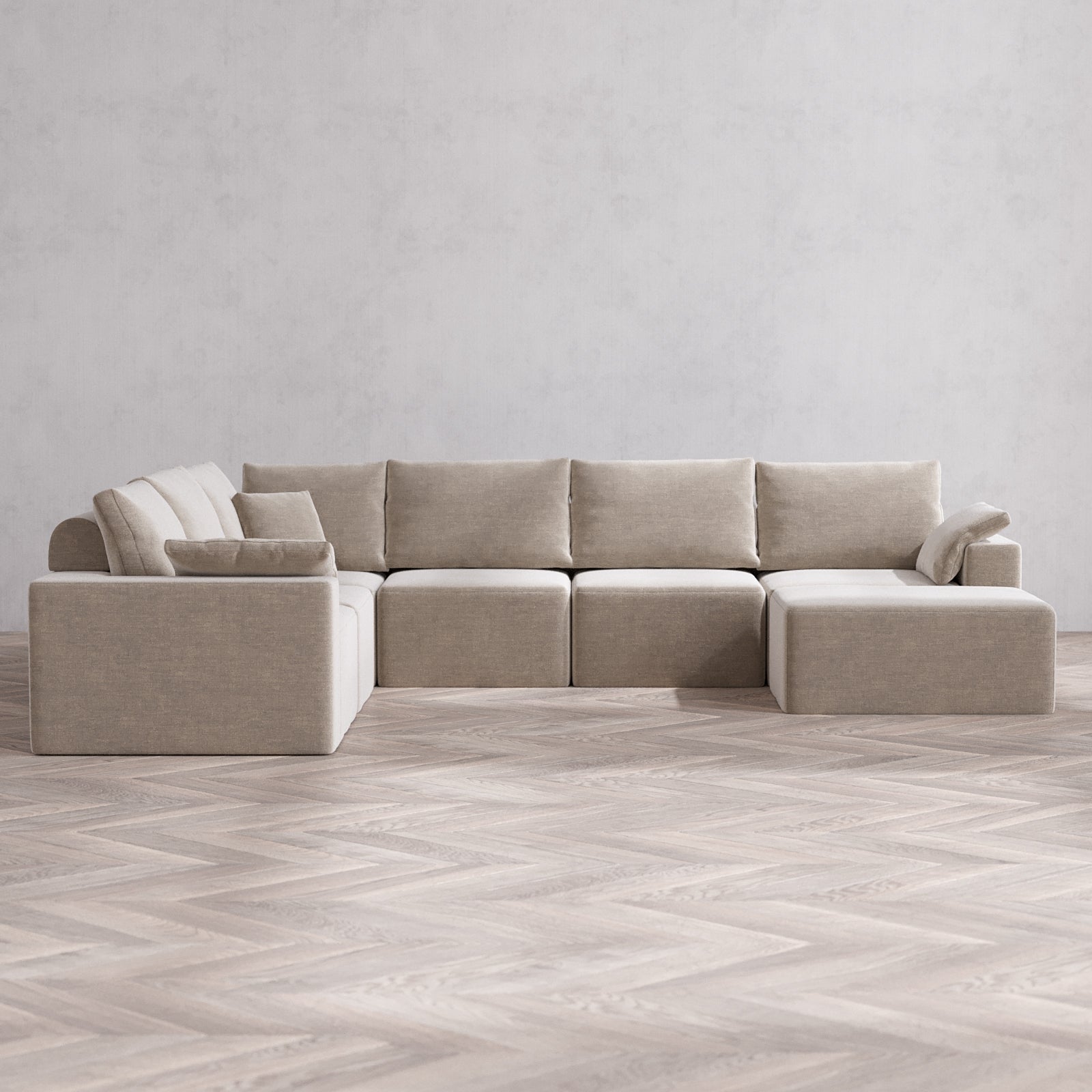 Modular Washable 7-Seater Corner Chaise Sectional Cloud + Bolster Sofa | Satin Velvet in Caraway
