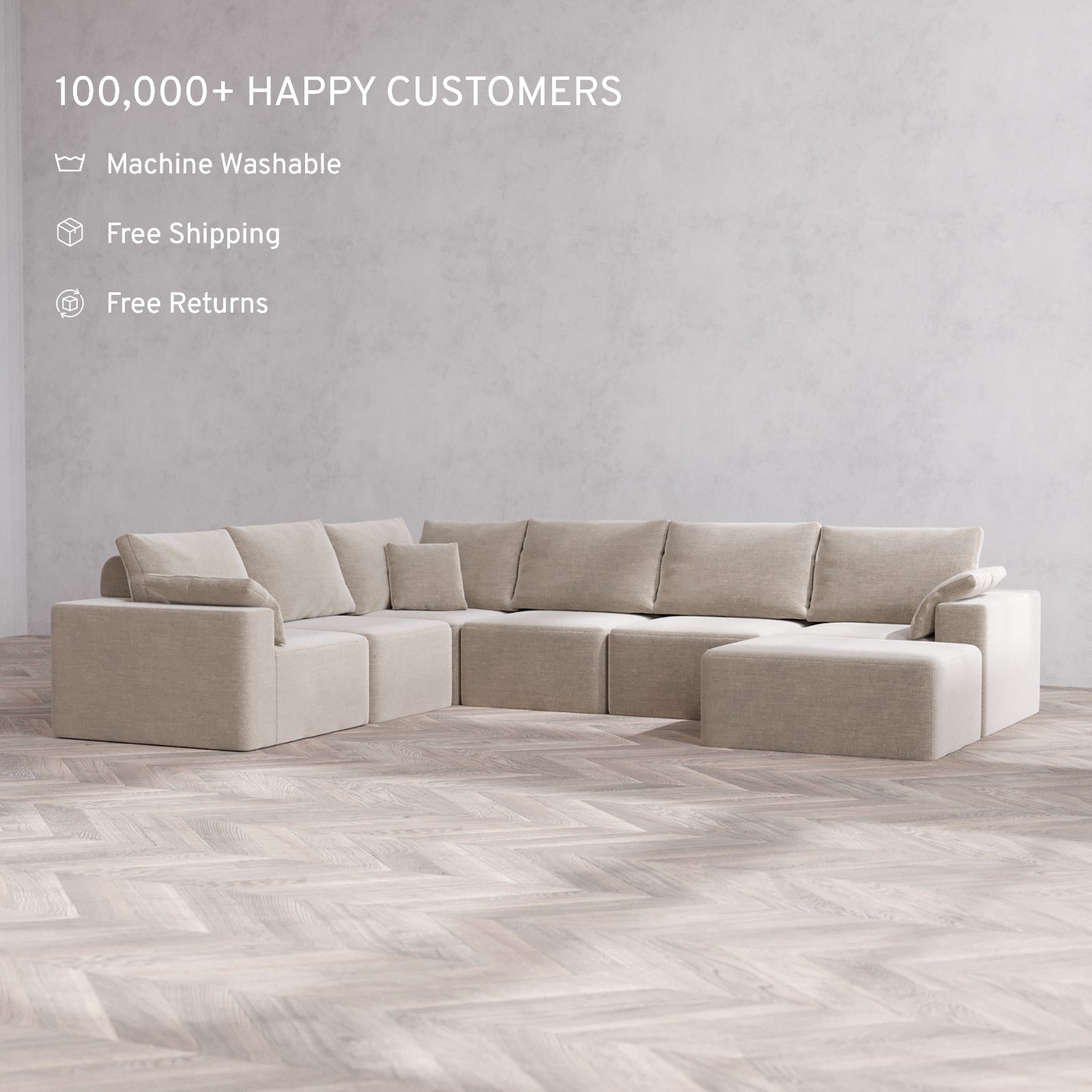 The Only Washable Cloud Sofa: With a waterproof frame and fabrics that resist pets, stains, and spills, this sofa is made to handle everyday messes. Our patent-pending covers are machine washable and fully interchangeable—buy extra sets to change up your look anytime.
