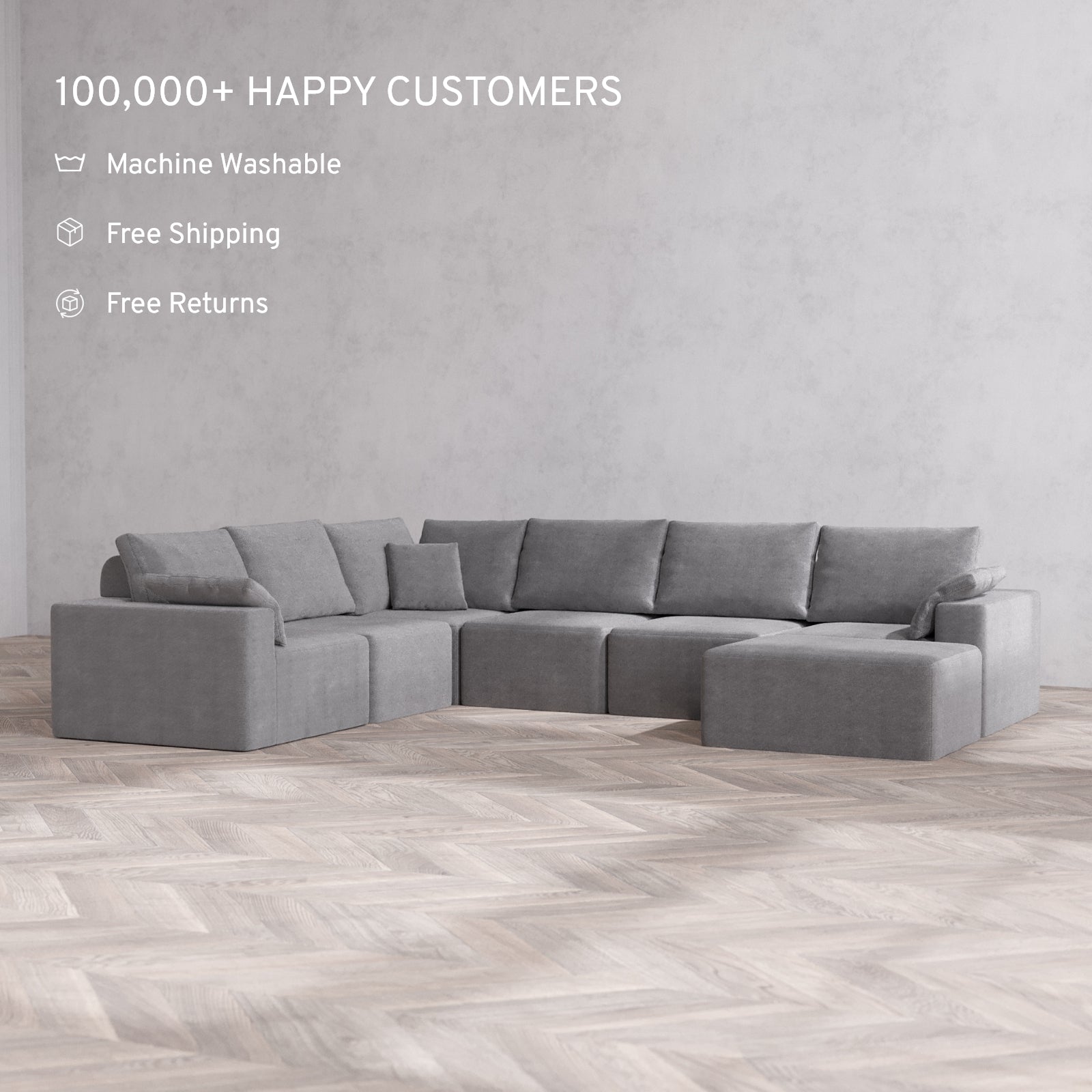 The Only Washable Cloud Sofa: With a waterproof frame and fabrics that resist pets, stains, and spills, this sofa is made to handle everyday messes. Our patent-pending covers are machine washable and fully interchangeable—buy extra sets to change up your look anytime.