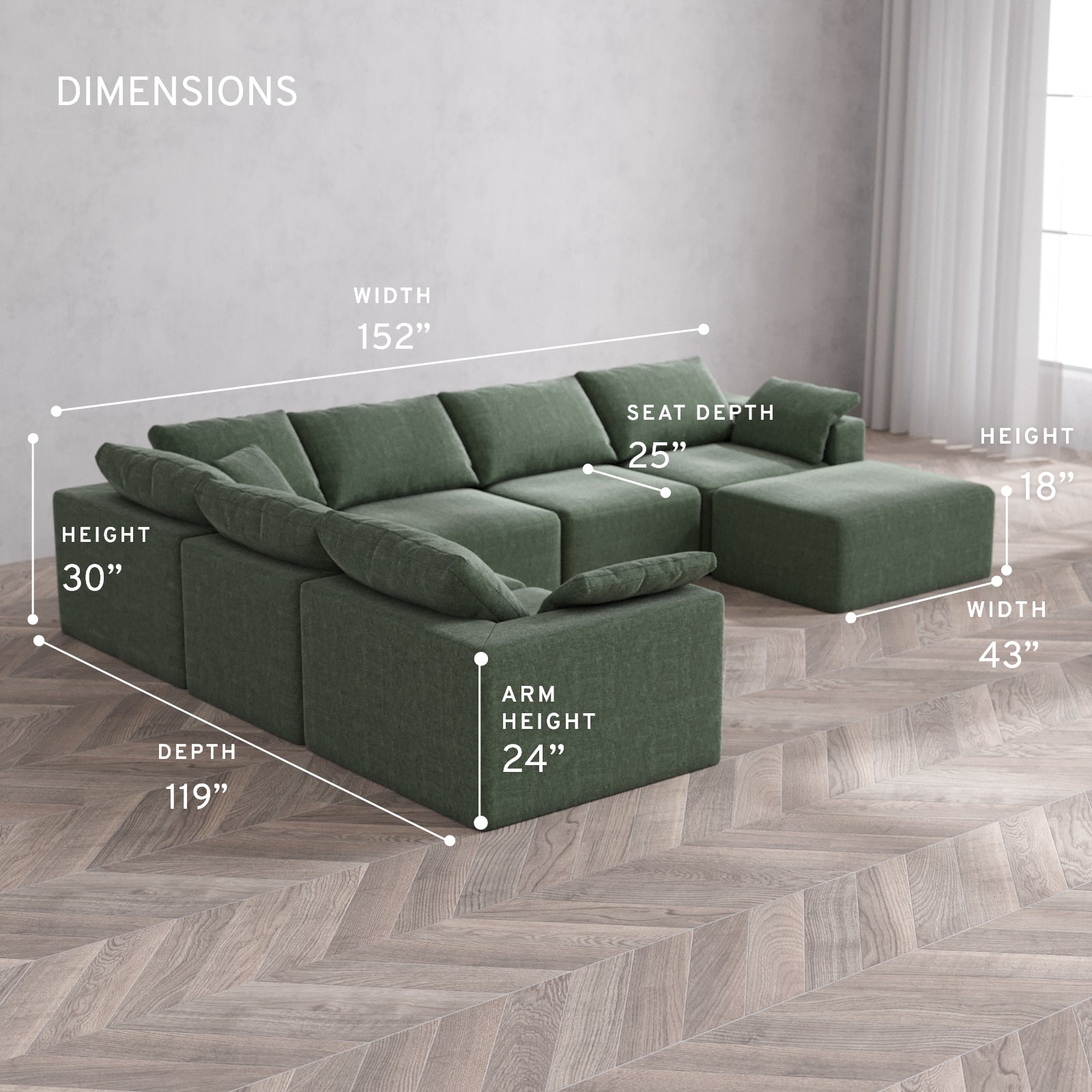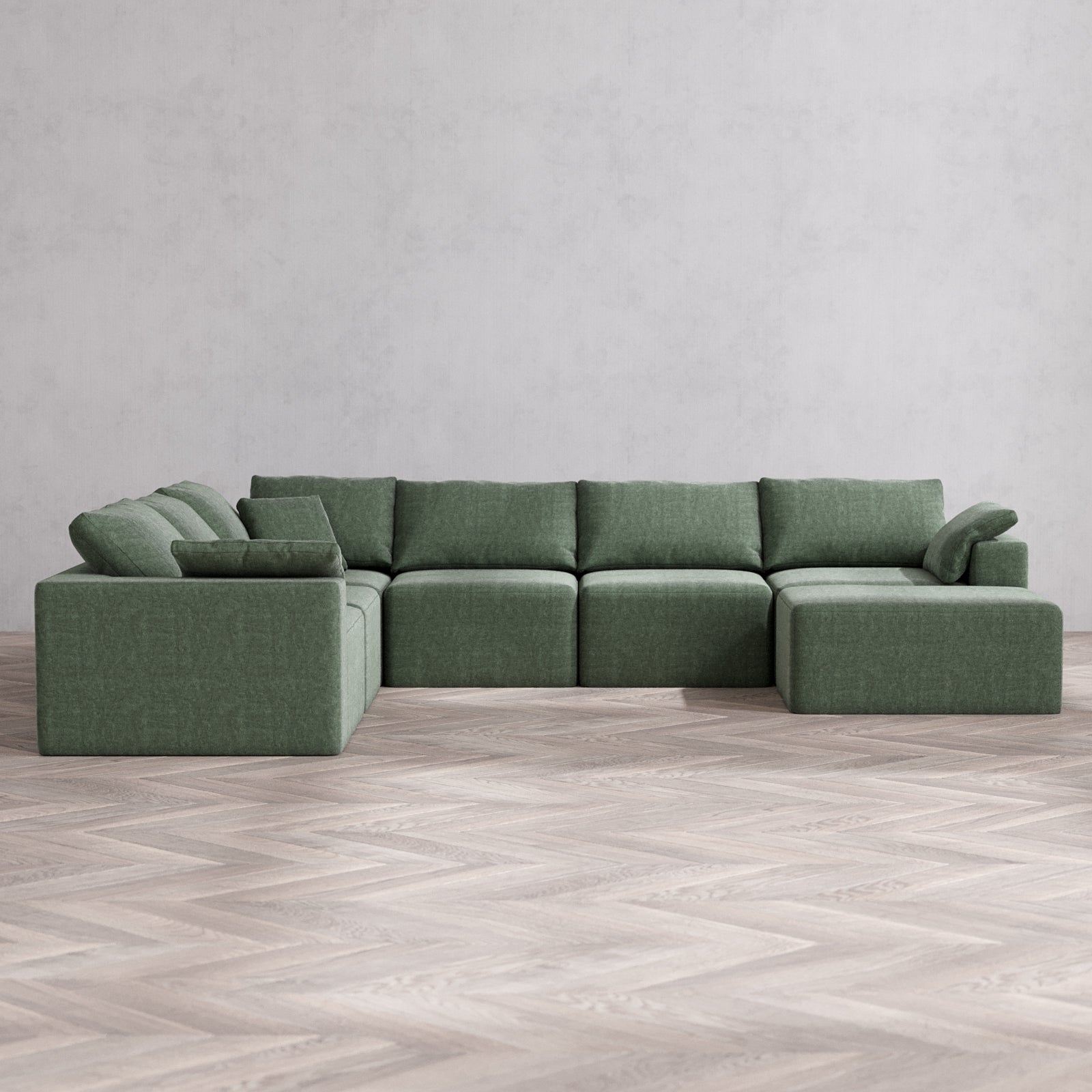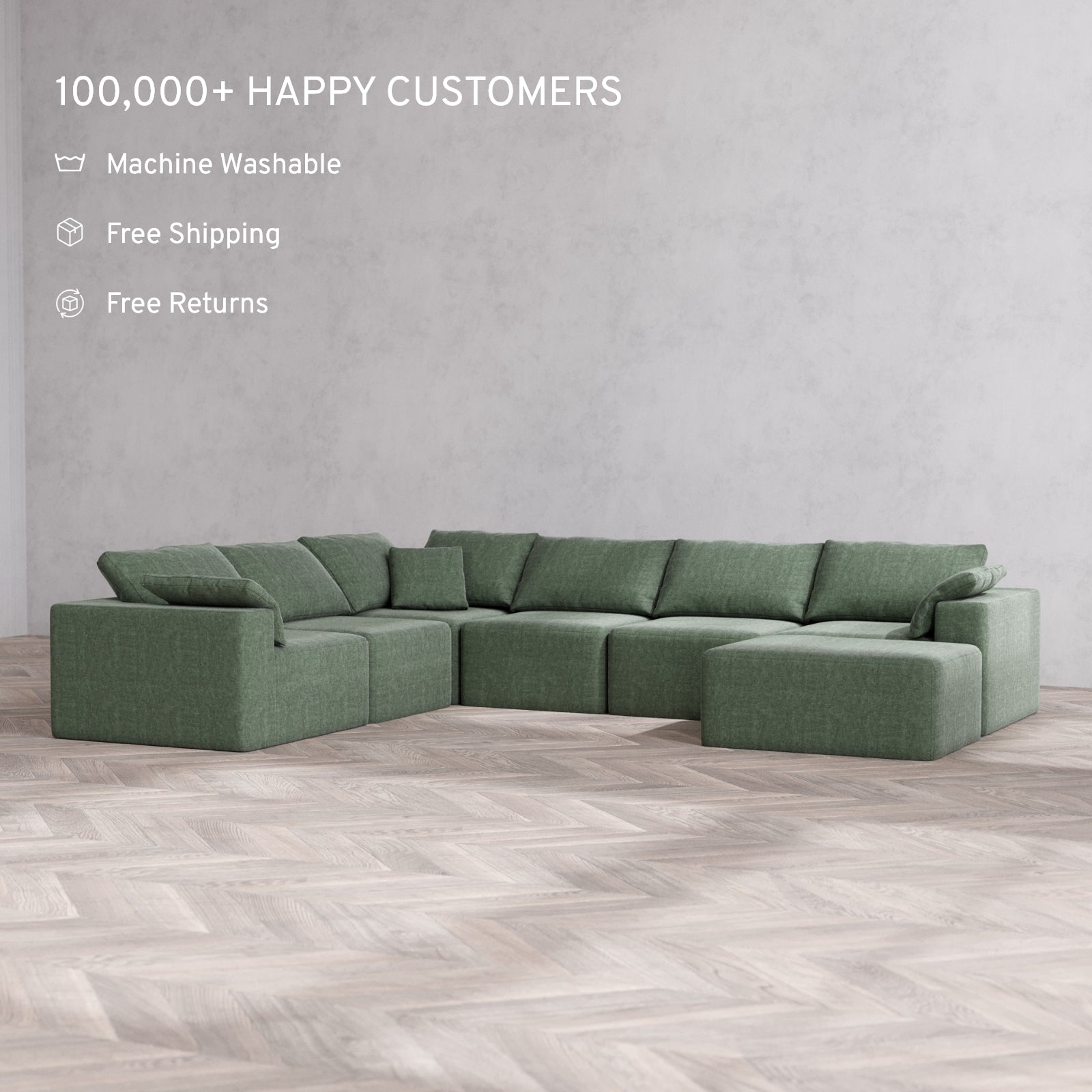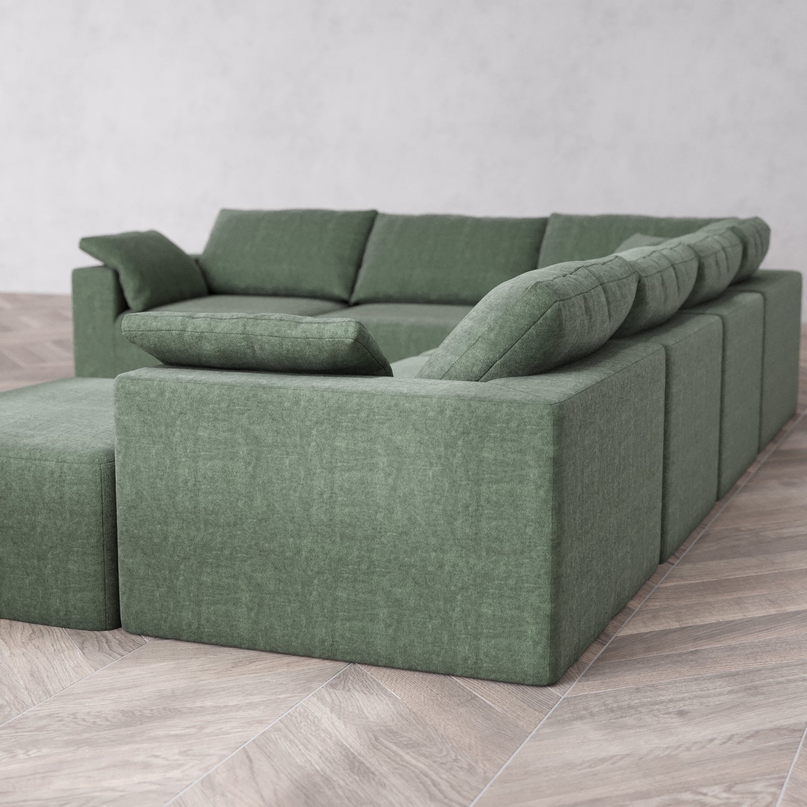 Modular Washable 7-Seater Corner Chaise Sectional Cloud Sofa | Heirloom Velvet in Sage