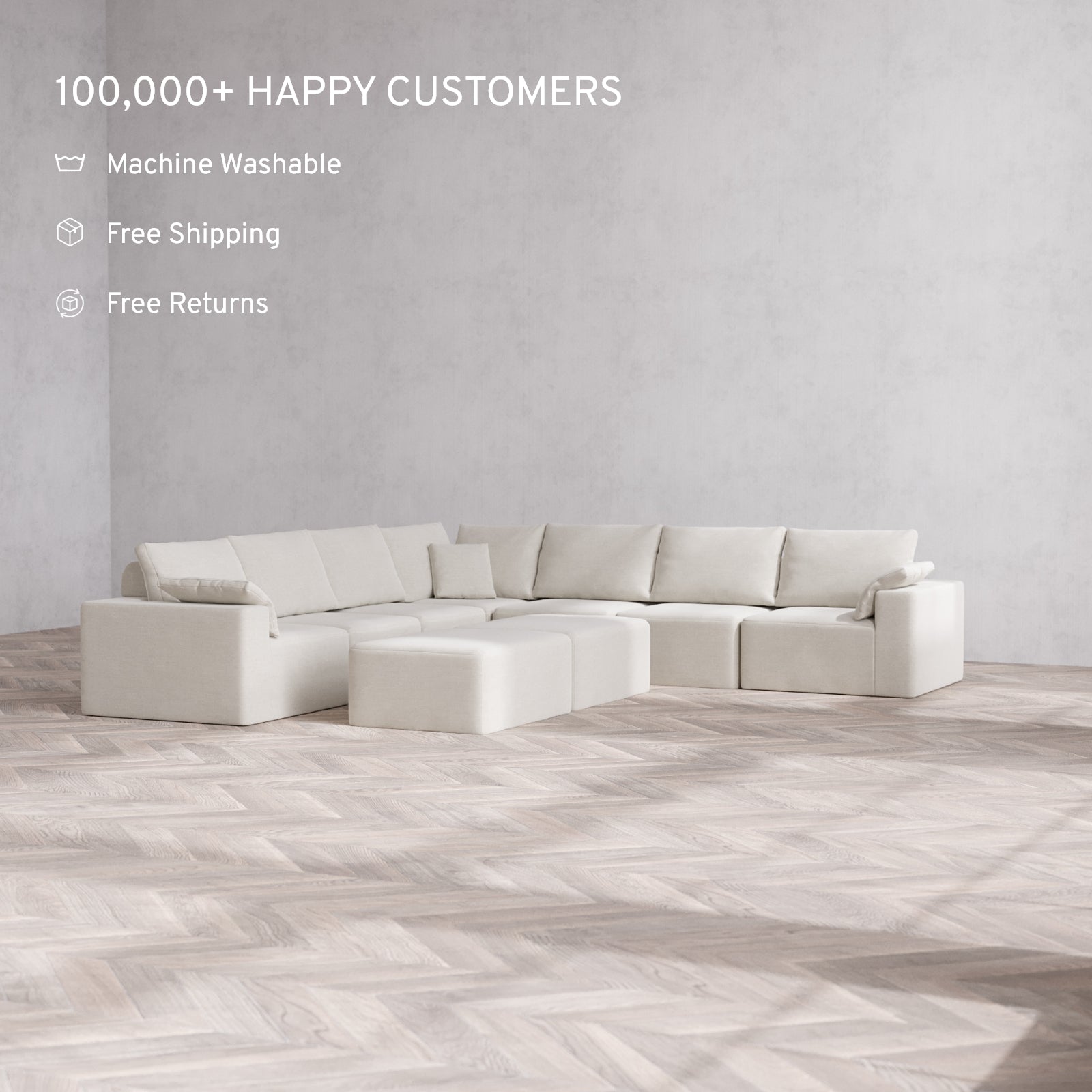 The Only Washable Cloud Sofa: With a waterproof frame and fabrics that resist pets, stains, and spills, this sofa is made to handle everyday messes. Our patent-pending covers are machine washable and fully interchangeable—buy extra sets to change up your look anytime.