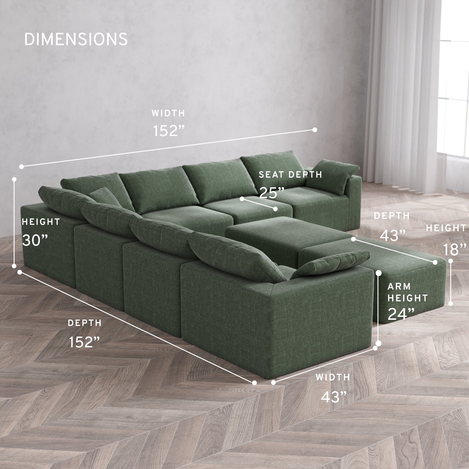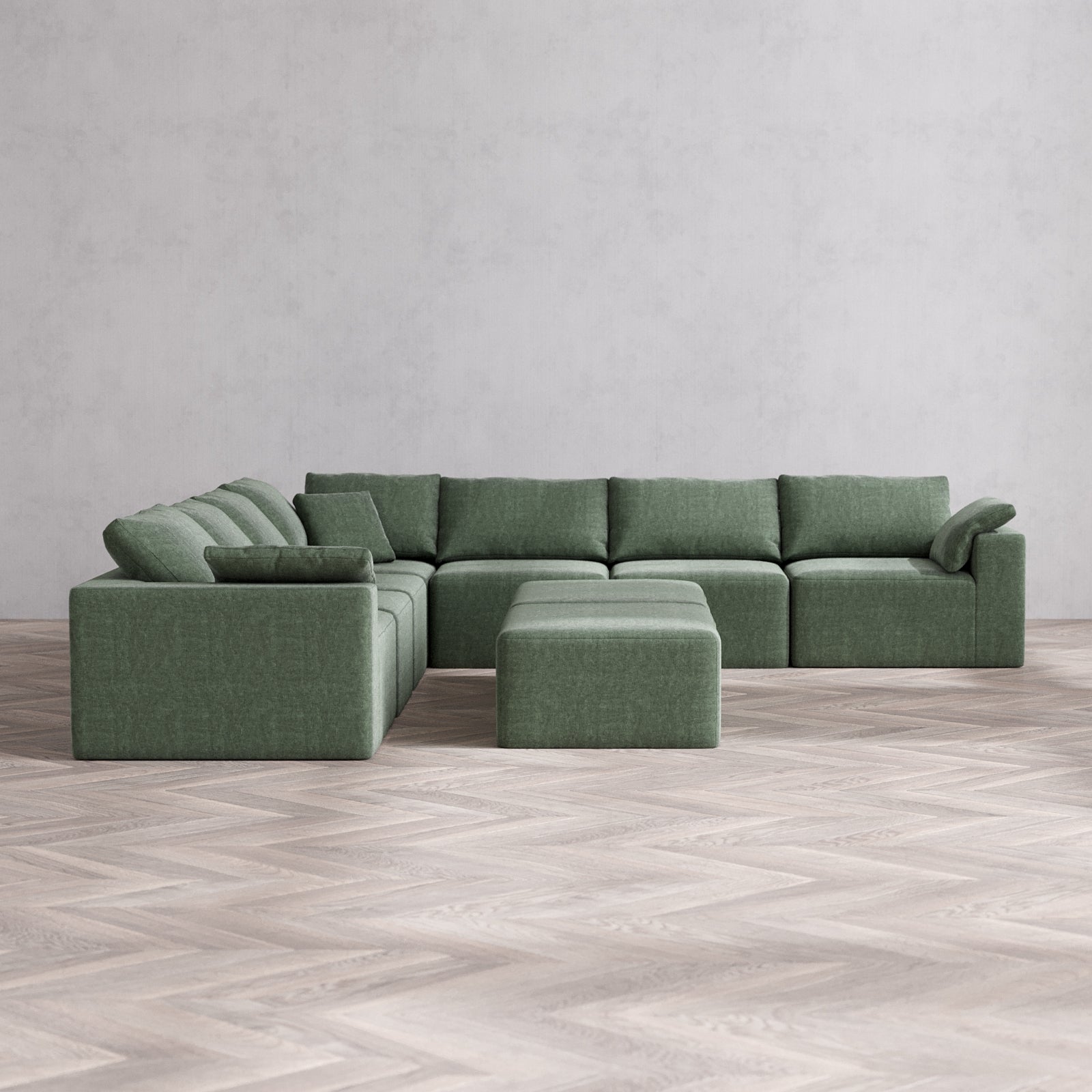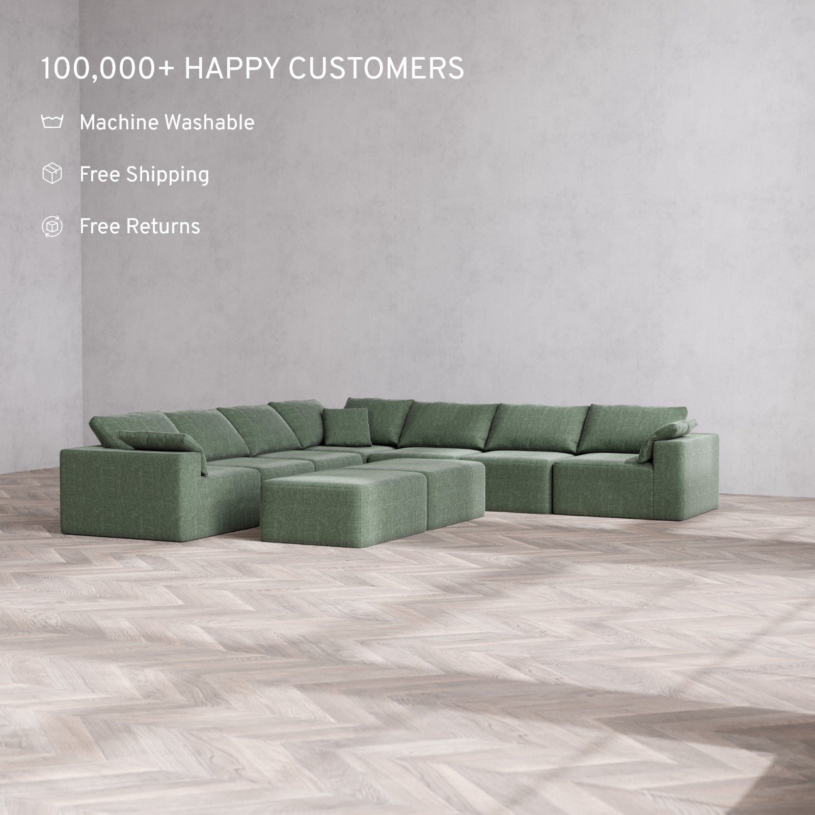 Modular Washable 7-Seater Corner Sectional + Chaise Ottoman Bench Cloud Sofa | Heirloom Velvet in Sage