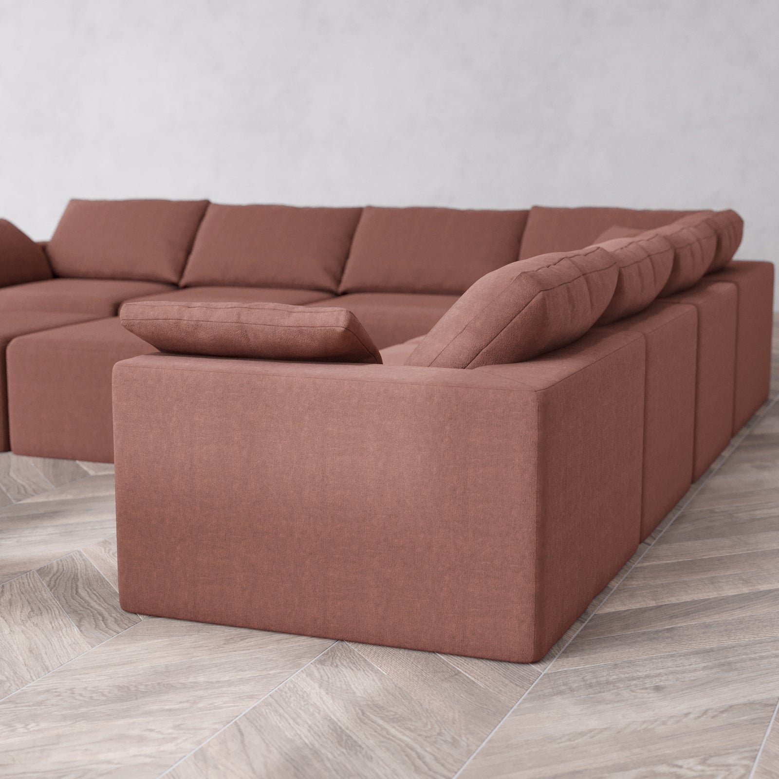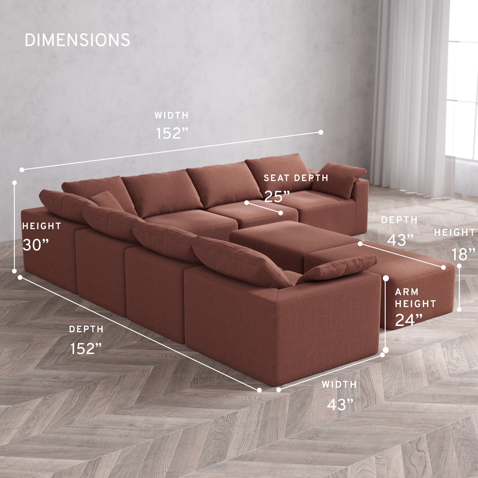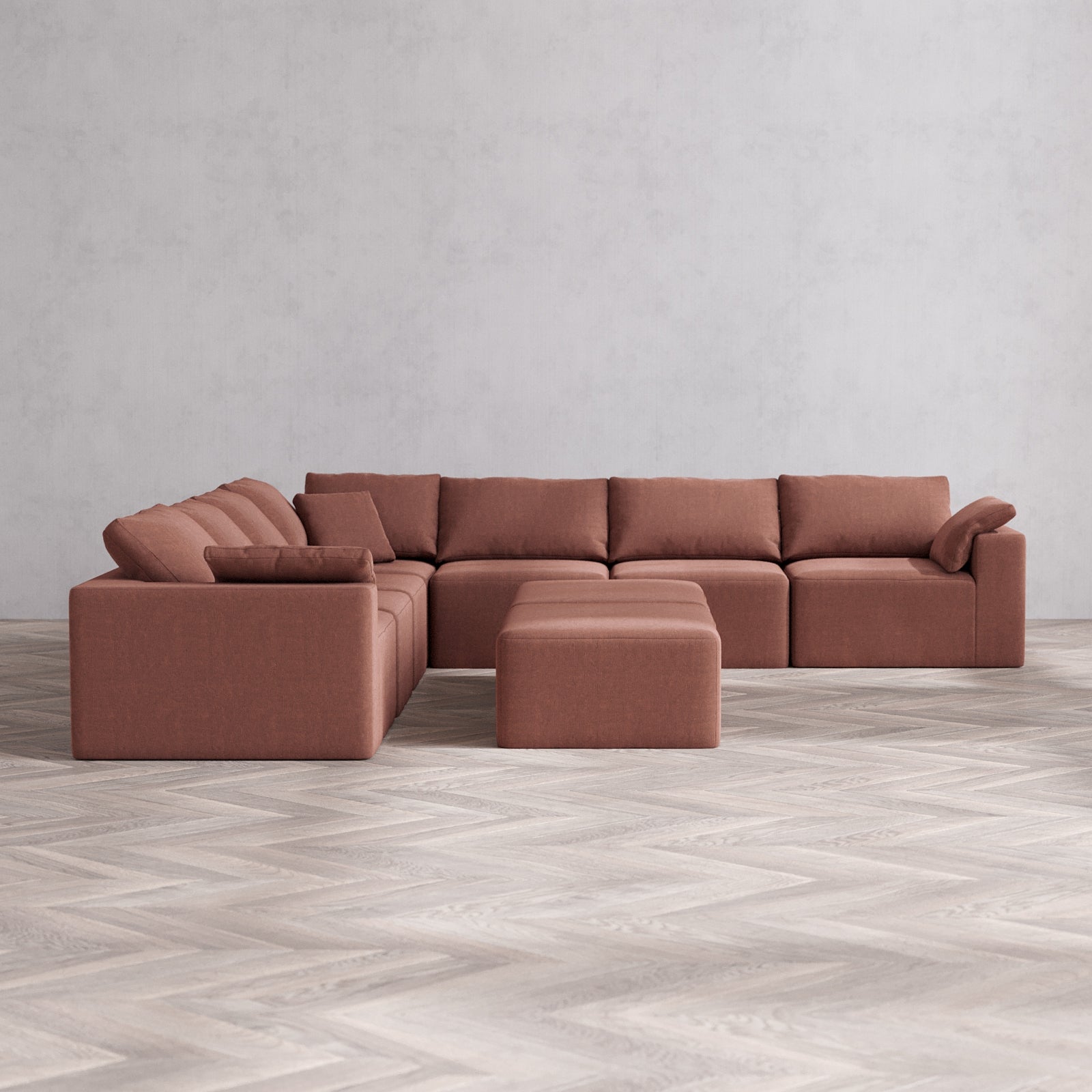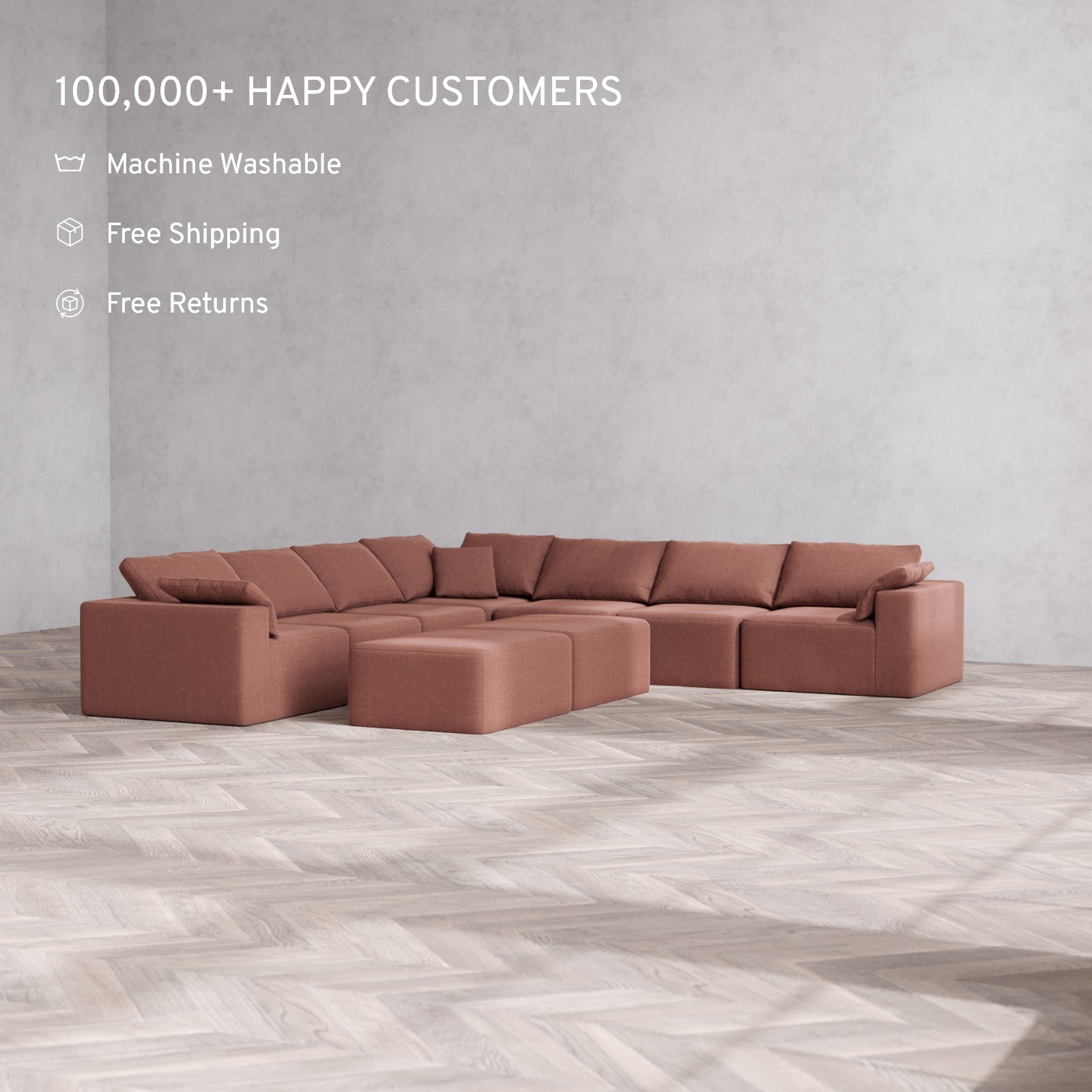 Modular Washable 7-Seater Corner Sectional + Chaise Ottoman Bench Cloud Sofa | Heirloom Velvet in Sumac