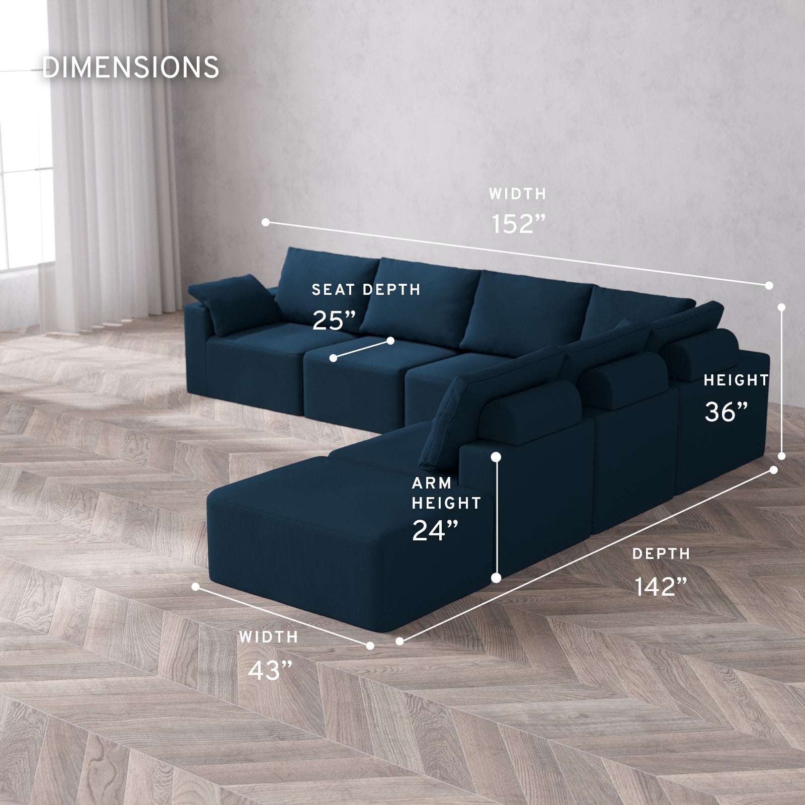 Modular Washable 7-Seater Open End Corner Sectional Cloud + Bolster Sofa | Left-Facing Arm | Arden Weave in Lazuli