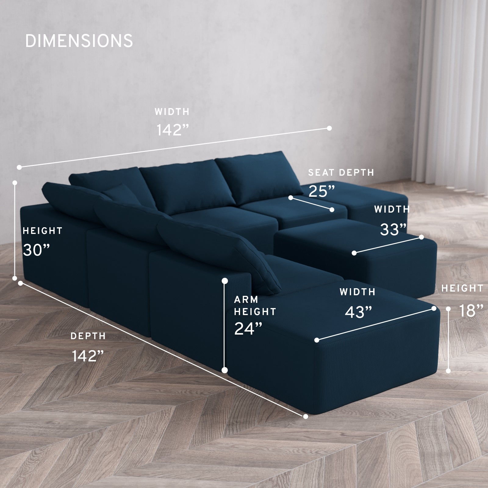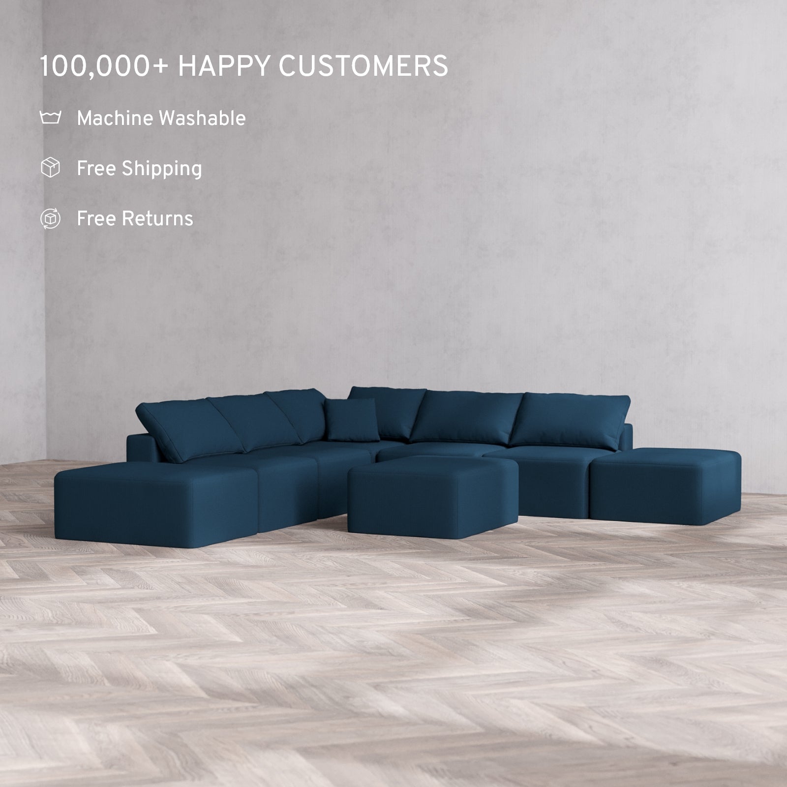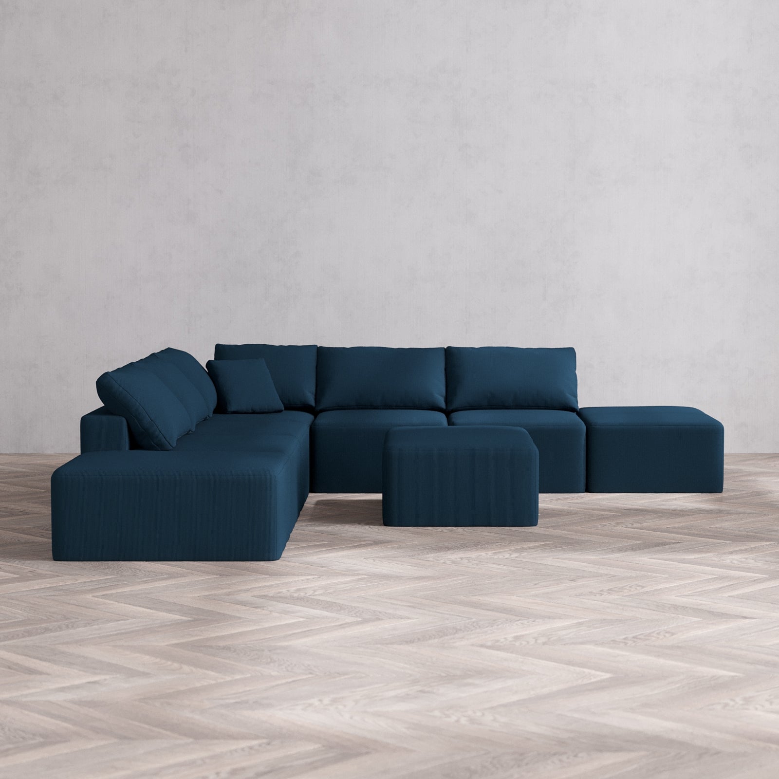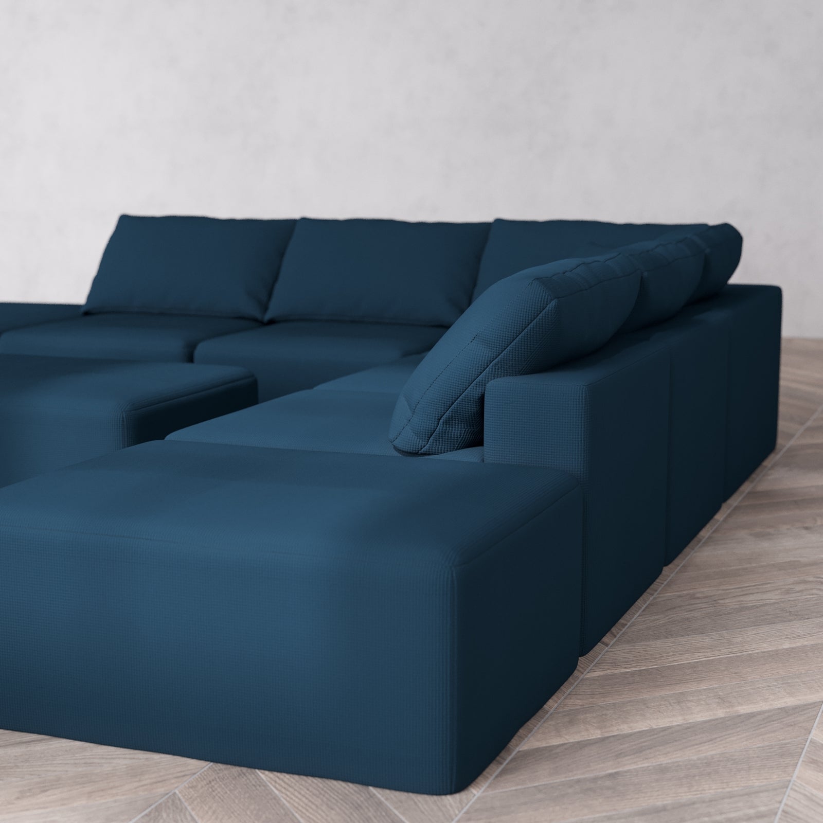 Modular Washable 7-Seater Open-Ends Corner Sectional + Chaise Ottoman Cloud Sofa | Arden Weave in Lazuli