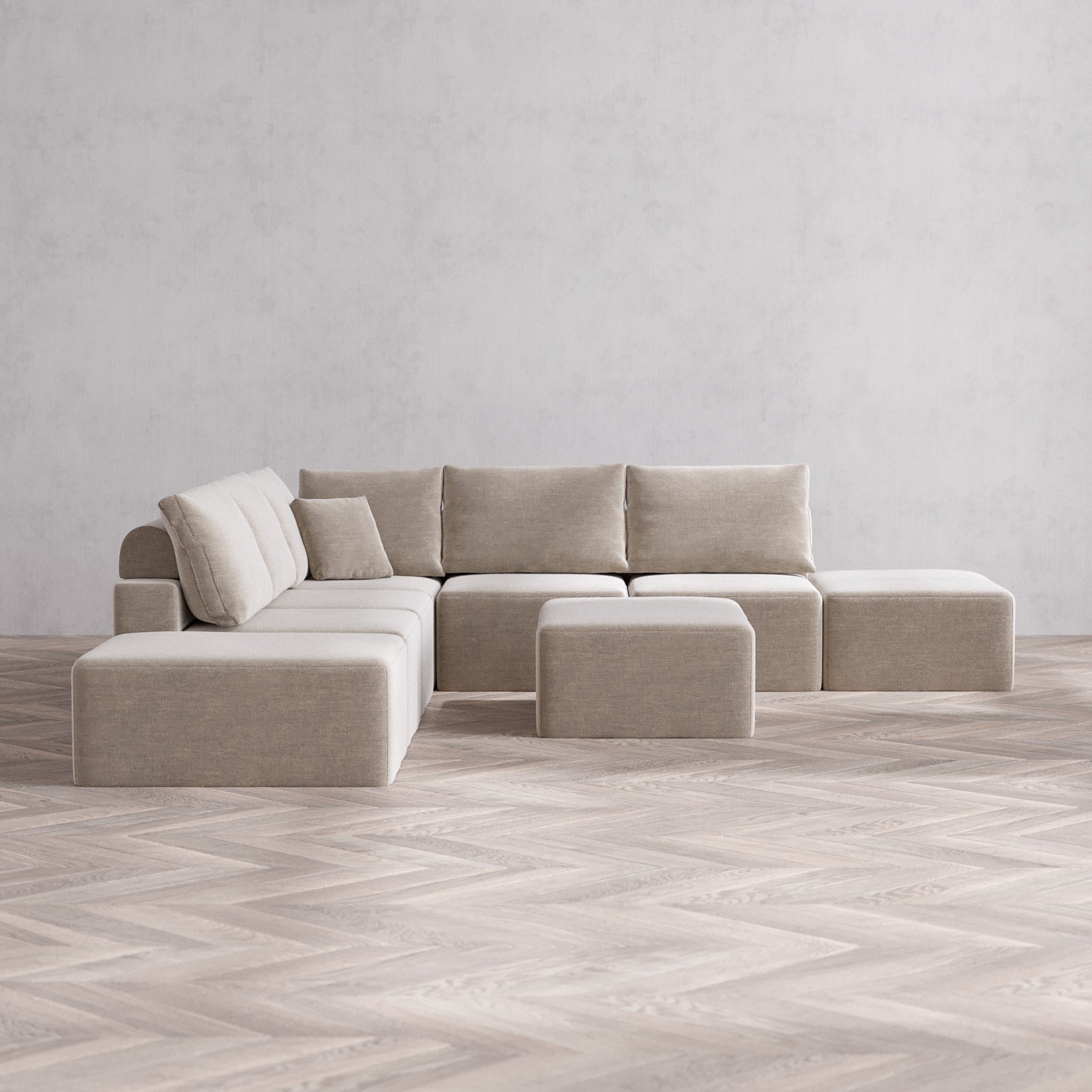 Designed with true flexibility in mind, our modular system adapts to your space and your lifestyle. Whether you're expanding, downsizing, or simply reimagining your layout, each piece connects effortlessly to create a configuration that works for you—today, and as life changes.