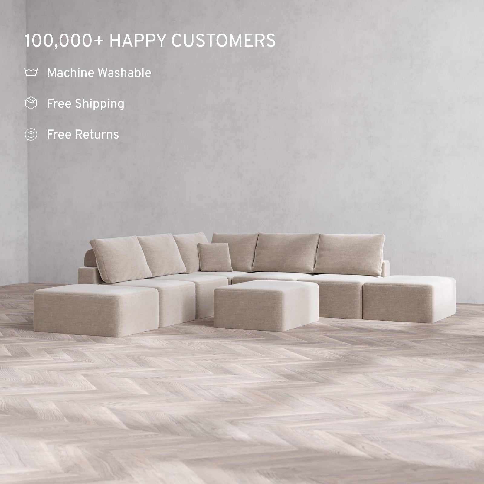 Machine Washable: Every piece of fabric—including the internal quilted duvet—is fully removable and machine washable. It’s the only Cloud-style sofa you can truly deep clean, effortlessly.