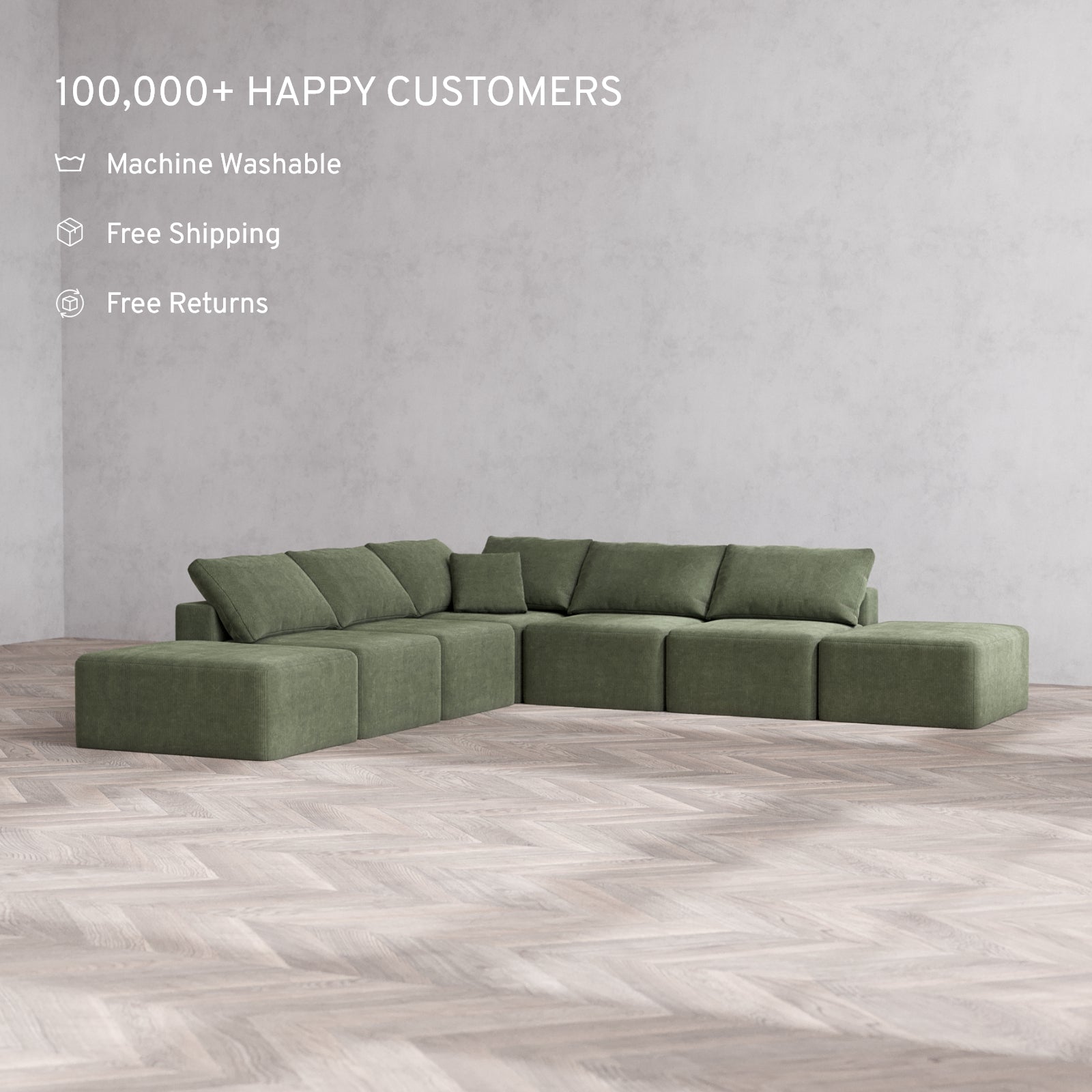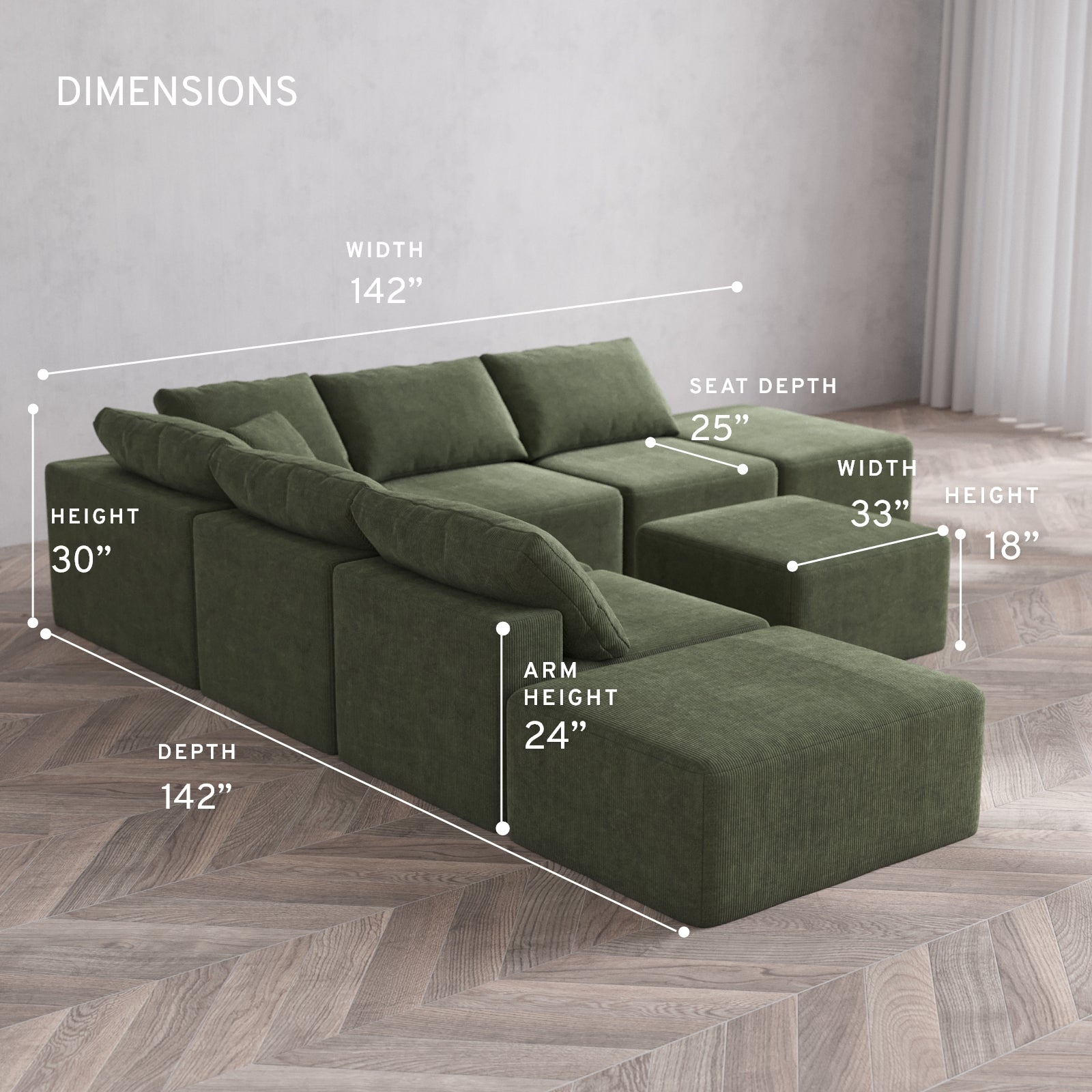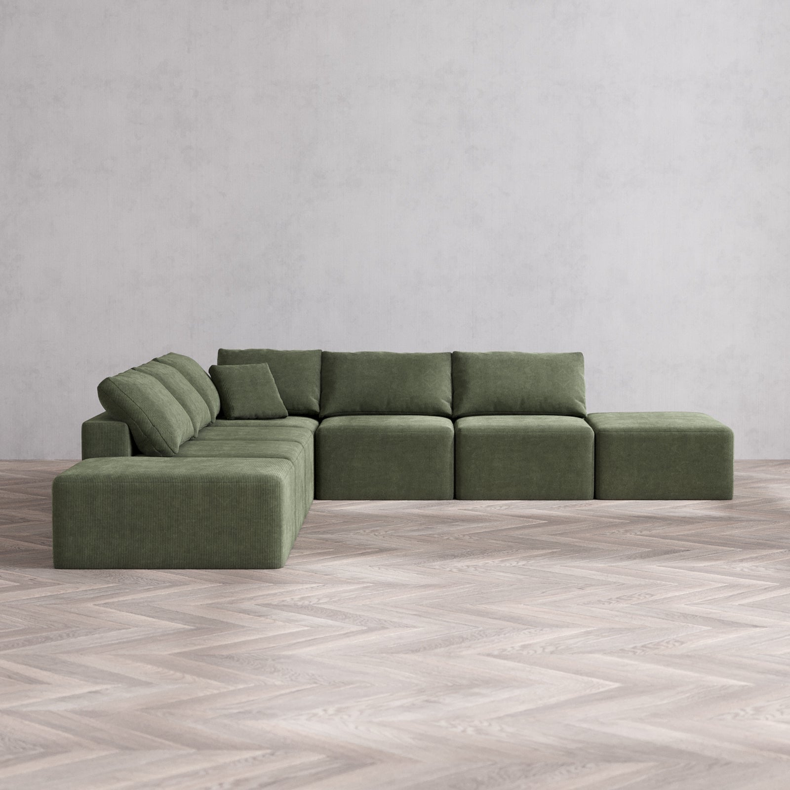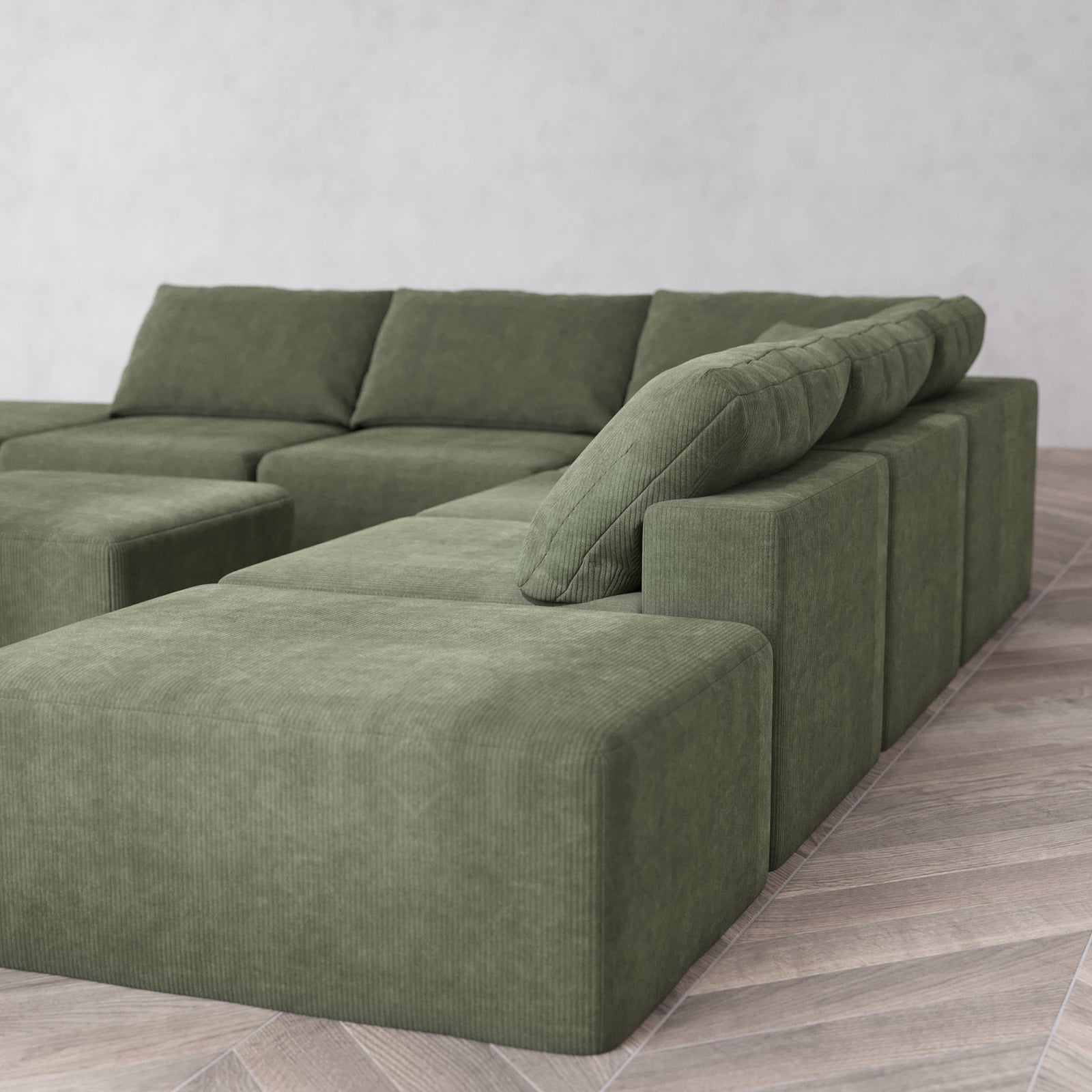 Modular Washable 7-Seater Open-Ends Corner Sectional Cloud Sofa | Luxe Corduroy in Juniper