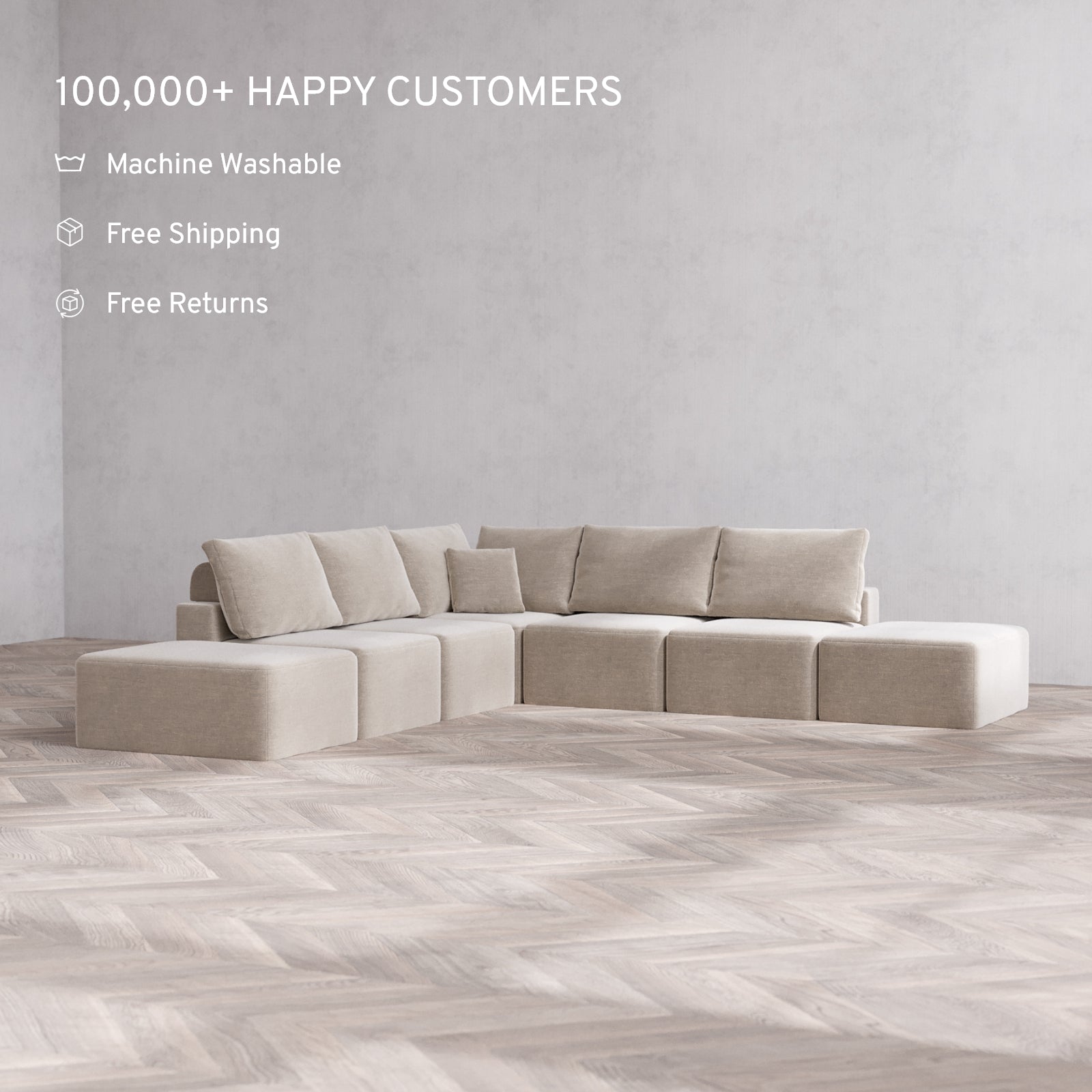 Machine Washable: Every piece of fabric—including the internal quilted duvet—is fully removable and machine washable. It’s the only Cloud-style sofa you can truly deep clean, effortlessly.