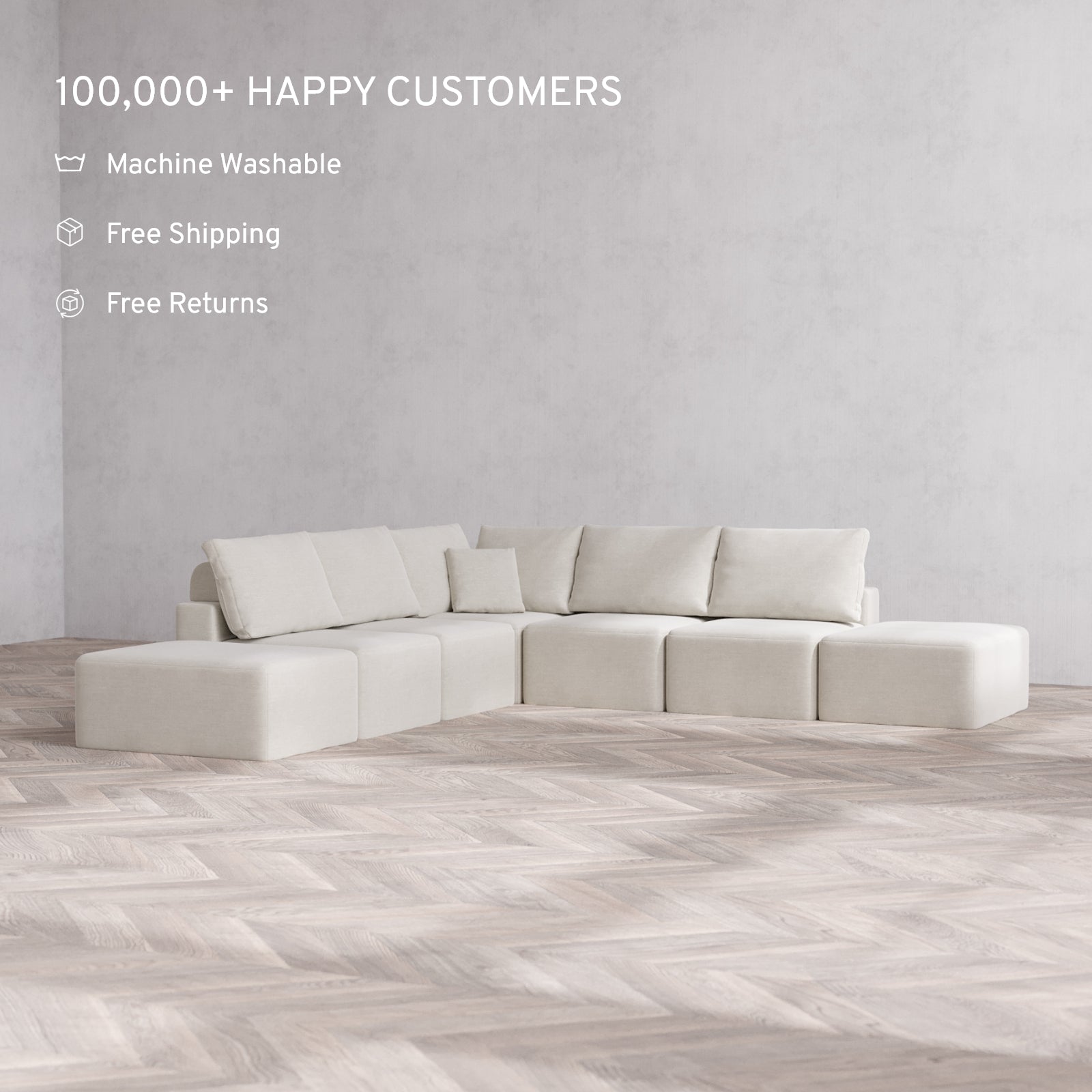 The Only Washable Cloud Sofa: With a waterproof frame and fabrics that resist pets, stains, and spills, this sofa is made to handle everyday messes. Our patent-pending covers are machine washable and fully interchangeable—buy extra sets to change up your look anytime.