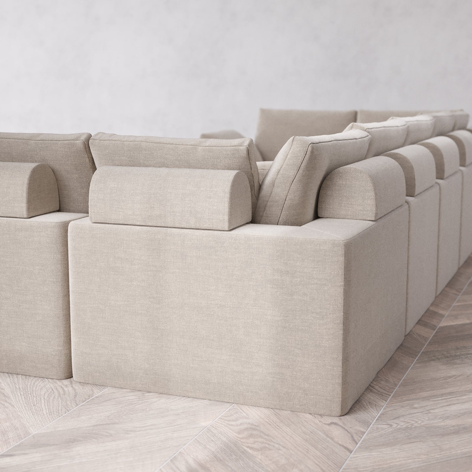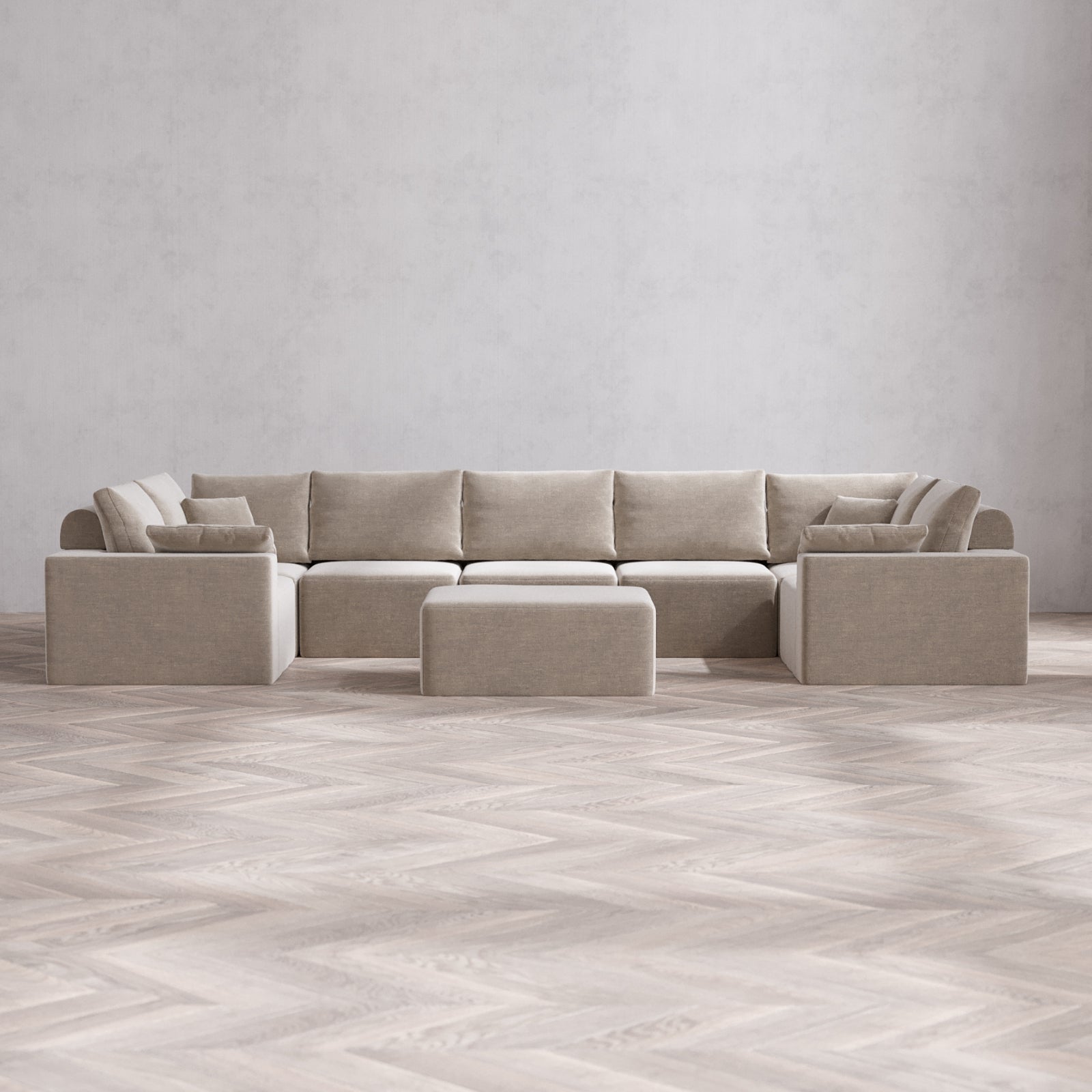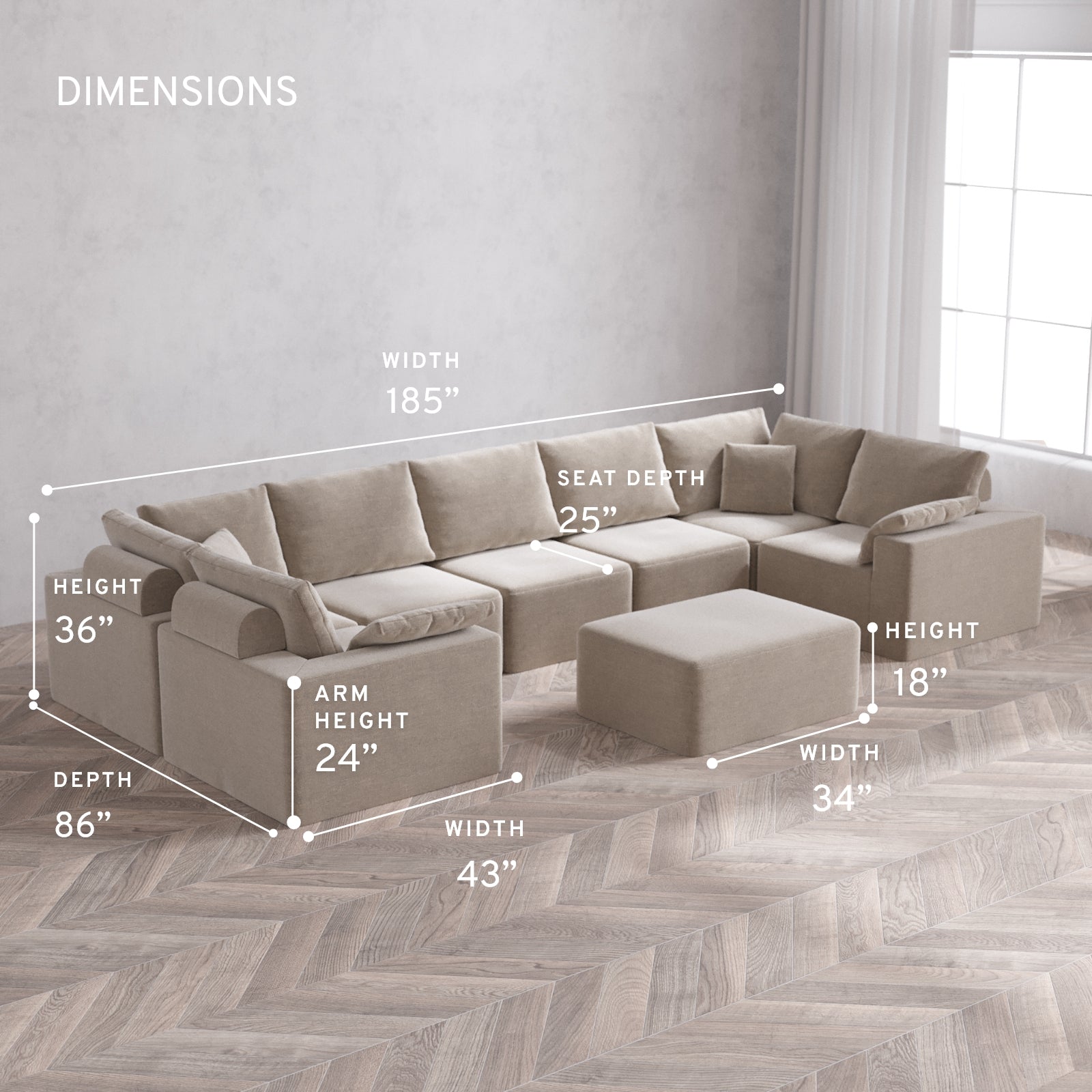 Modular Washable 7-Seater U Sectional + Chaise Ottoman Cloud + Bolster Sofa | Satin Velvet in Caraway