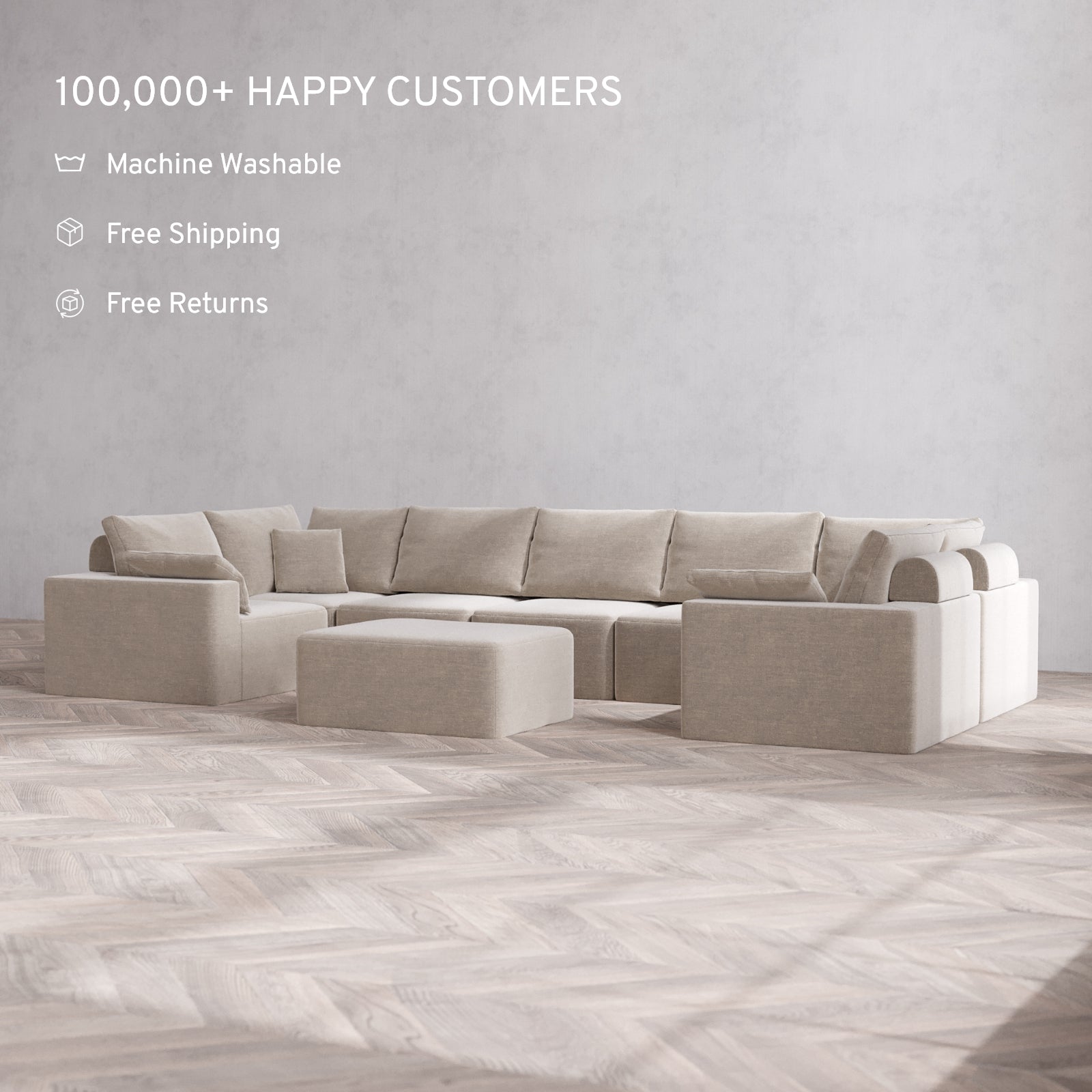 The Only Washable Cloud Sofa: With a waterproof frame and fabrics that resist pets, stains, and spills, this sofa is made to handle everyday messes. Our patent-pending covers are machine washable and fully interchangeable—buy extra sets to change up your look anytime.