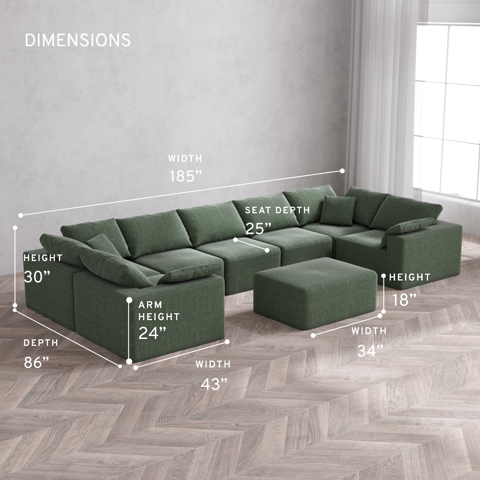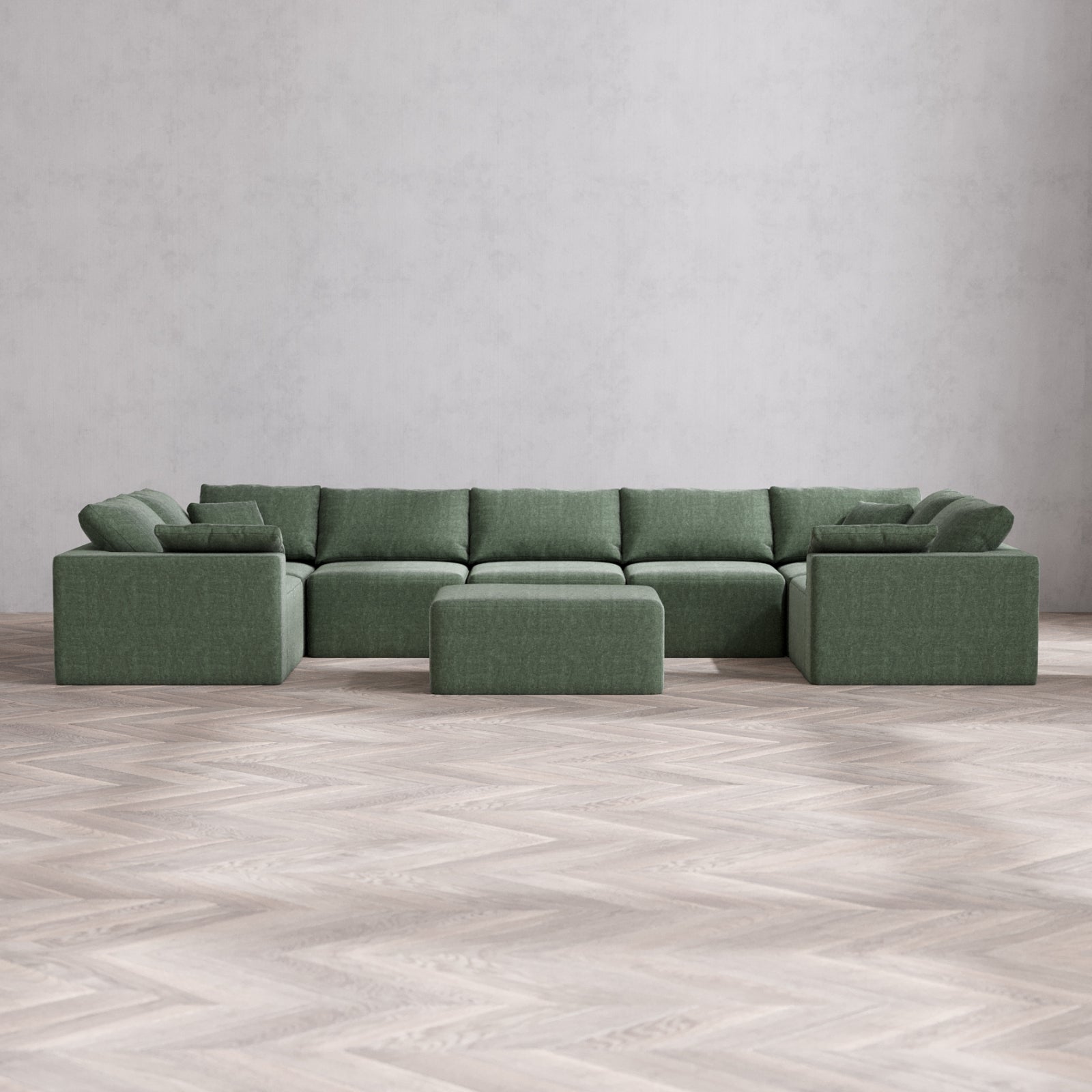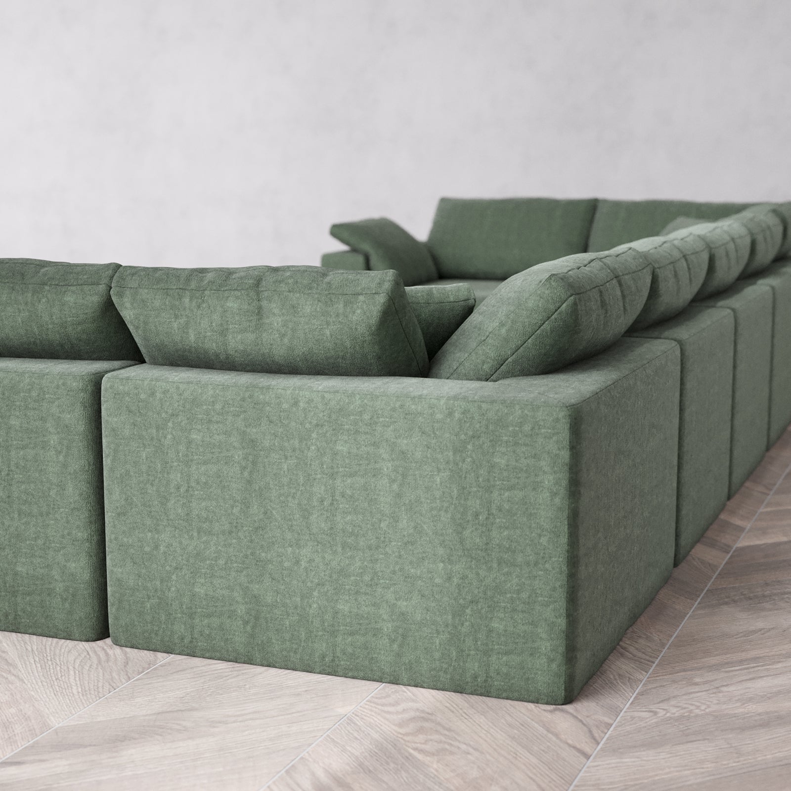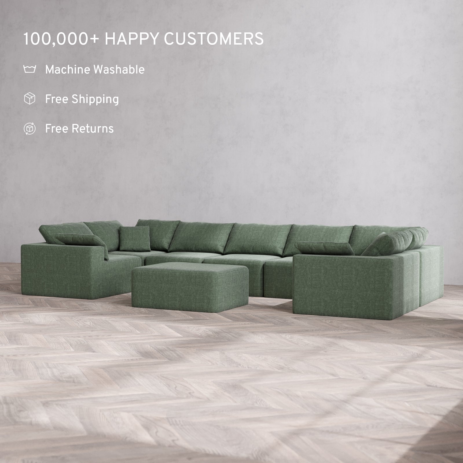 Modular Washable 7-Seater U Sectional + Chaise Ottoman Cloud Sofa | Heirloom Velvet in Sage