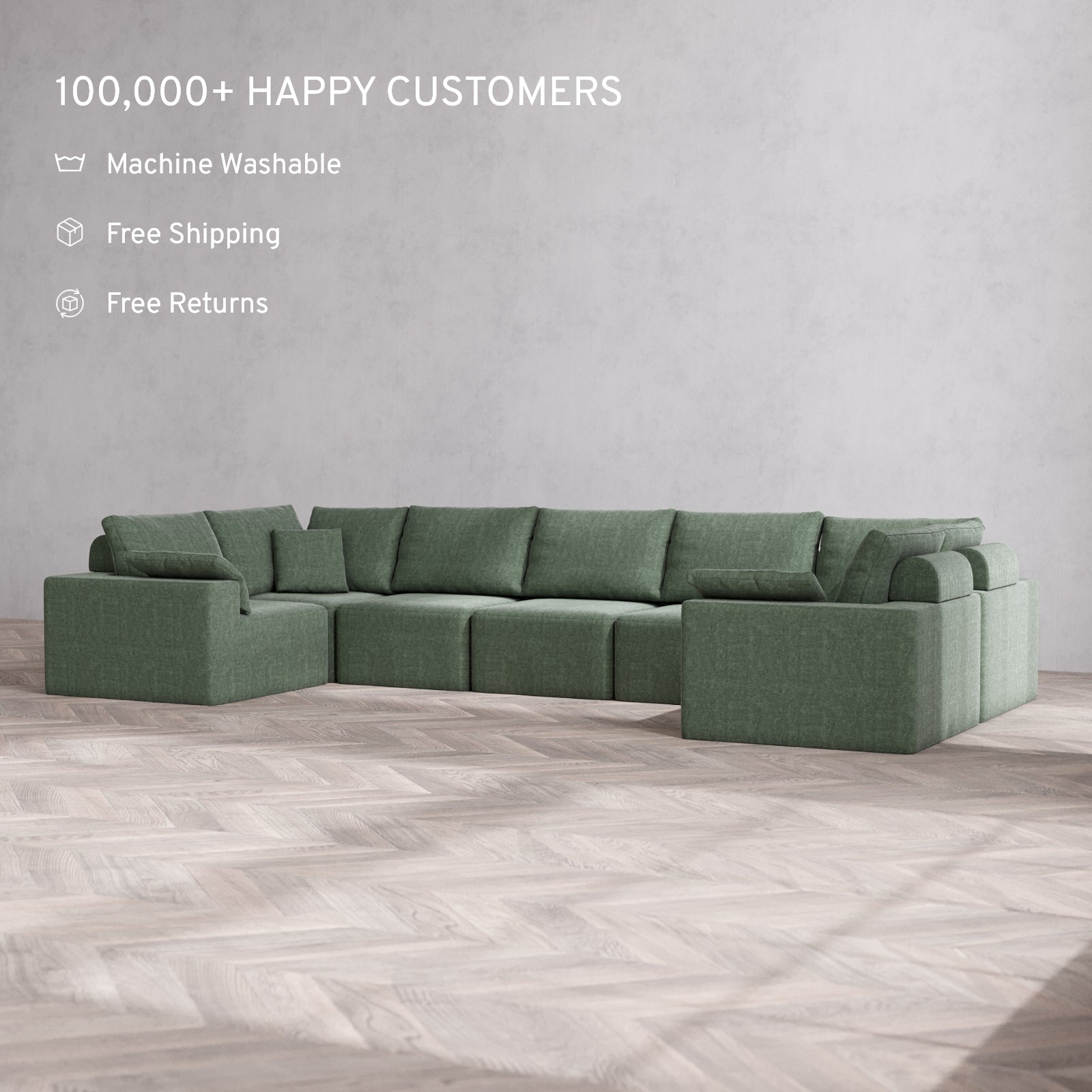 Modular Washable 7-Seater U Sectional Cloud + Bolster Sofa | Heirloom Velvet in Sage