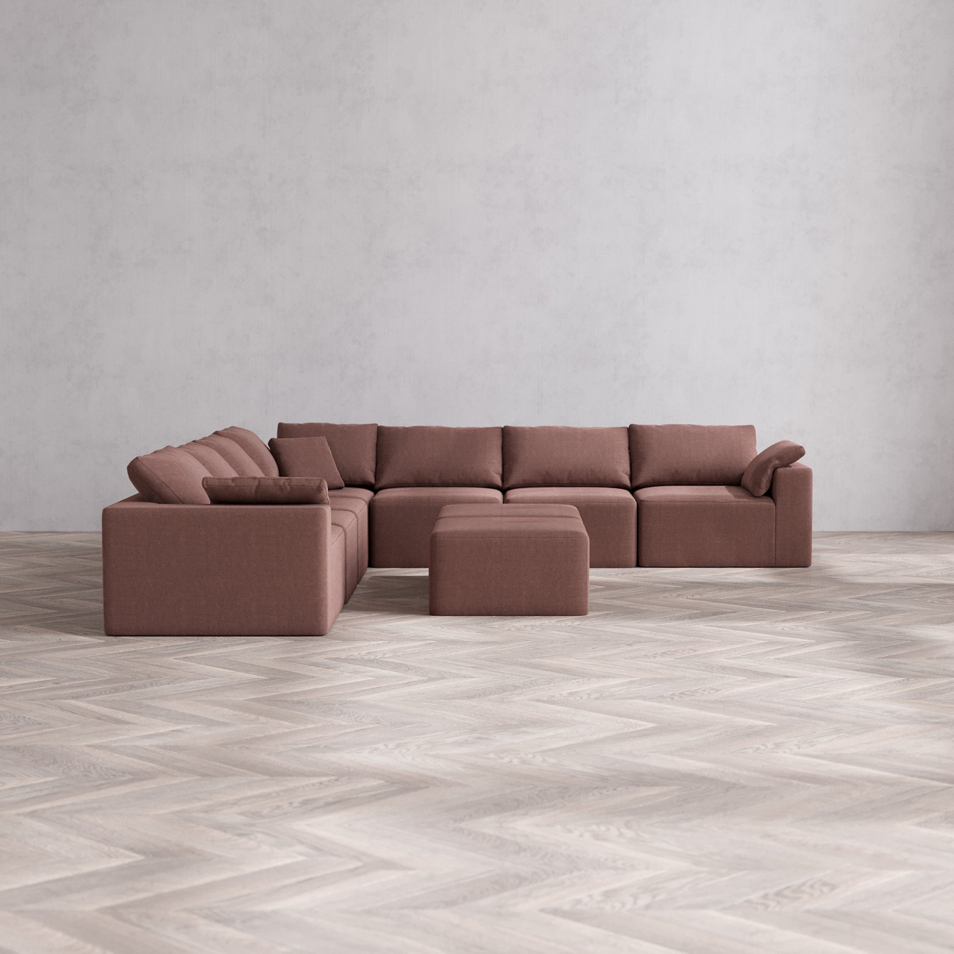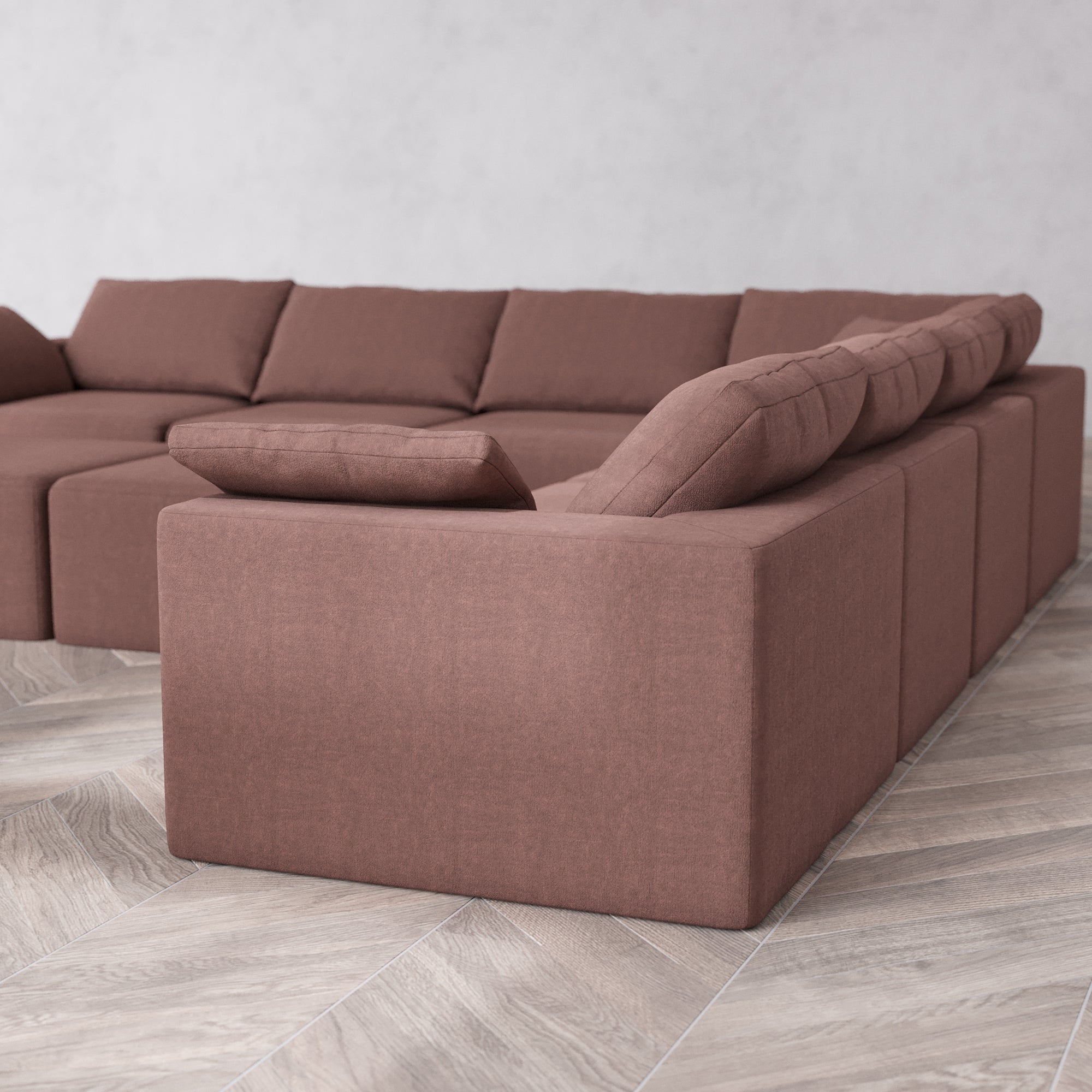 Slipcover Only - Modular Washable 7-Seater Corner Sectional + Ottoman Bench Cloud Sofa in Sumac