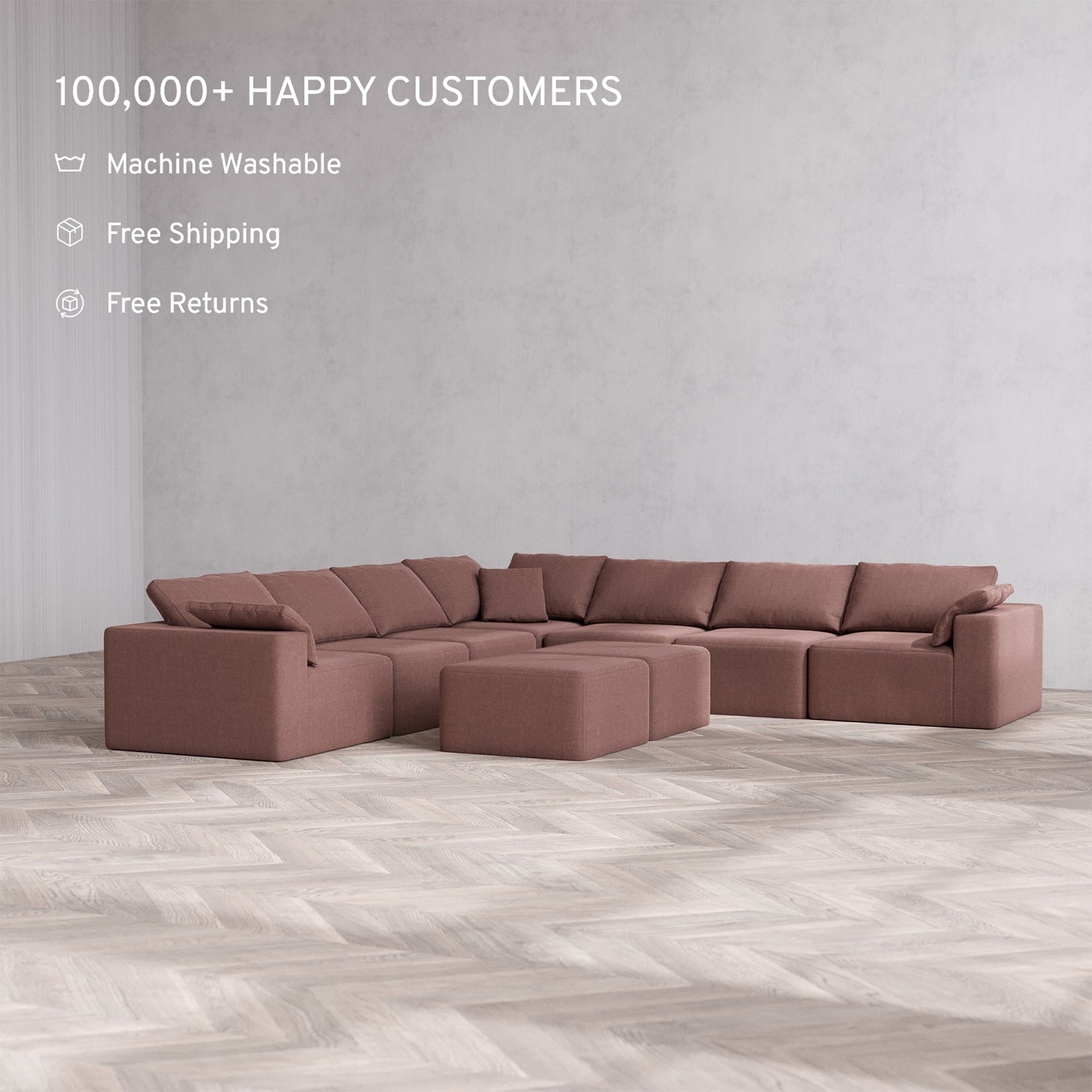 Machine Washable: Every piece of fabric—including the internal quilted duvet—is fully removable and machine washable. It’s the only Cloud-style sofa you can truly deep clean, effortlessly.