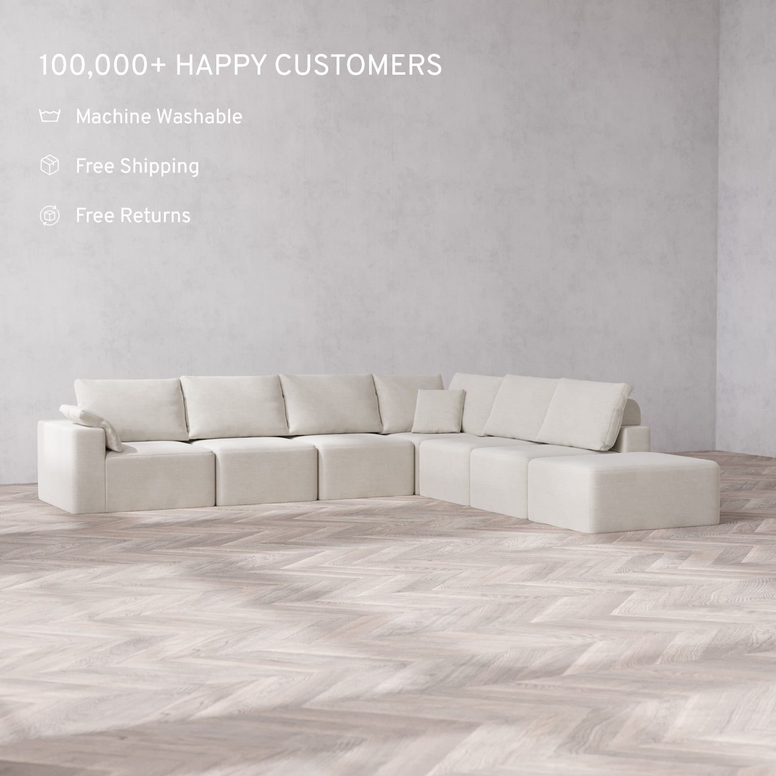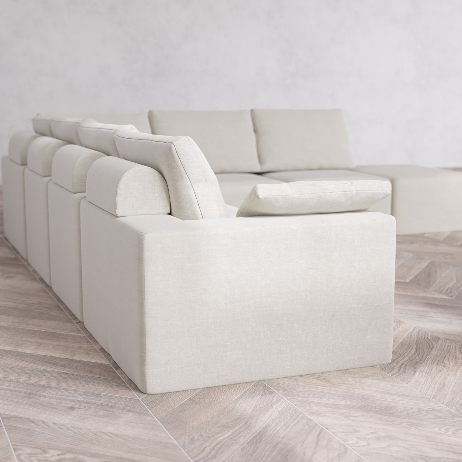 Slipcover Only - Modular Washable 7-Seater Open End Corner Sectional Cloud + Bolster Sofa in Cashew | Left-Facing Arm