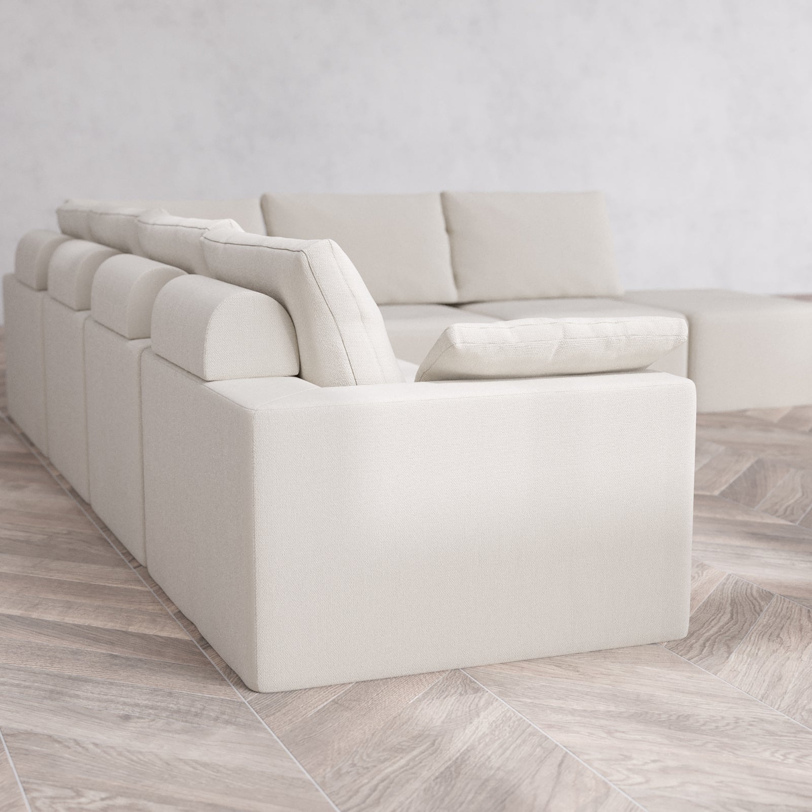 Slipcover Only - Modular Washable 7-Seater Open End Corner Sectional Cloud + Bolster Sofa in Pearl | Left-Facing Arm