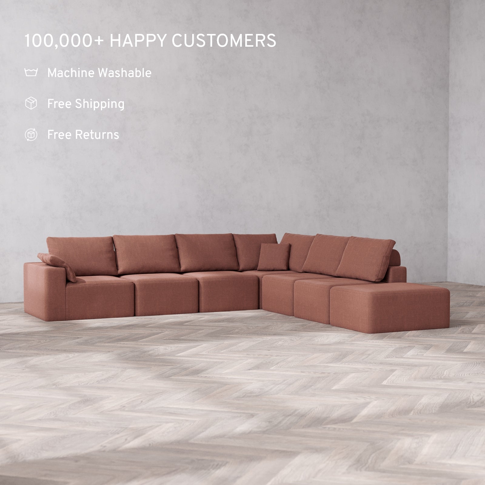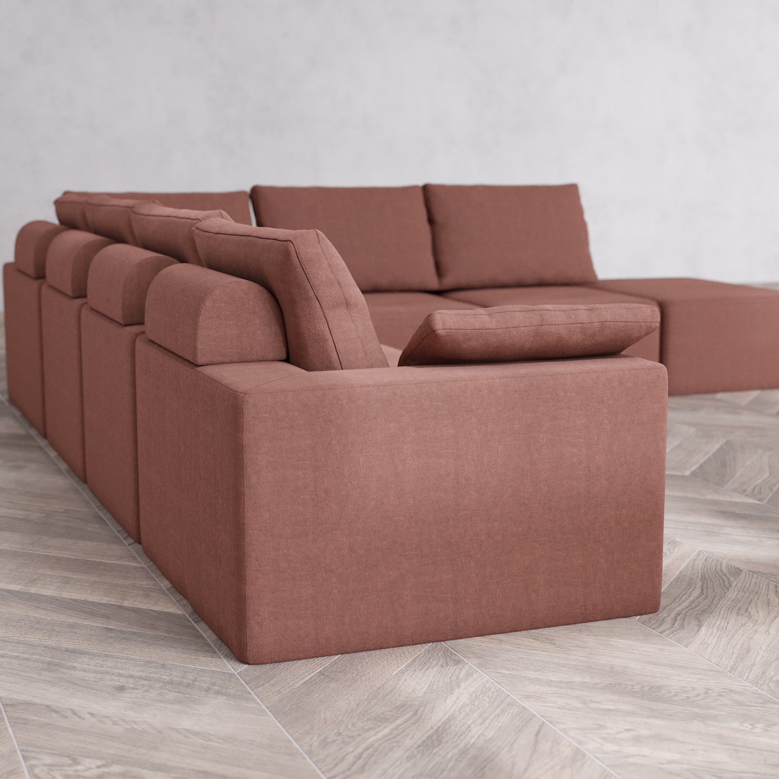 Slipcover Only - Modular Washable 7-Seater Open End Corner Sectional Cloud + Bolster Sofa in Sumac | Left-Facing Arm