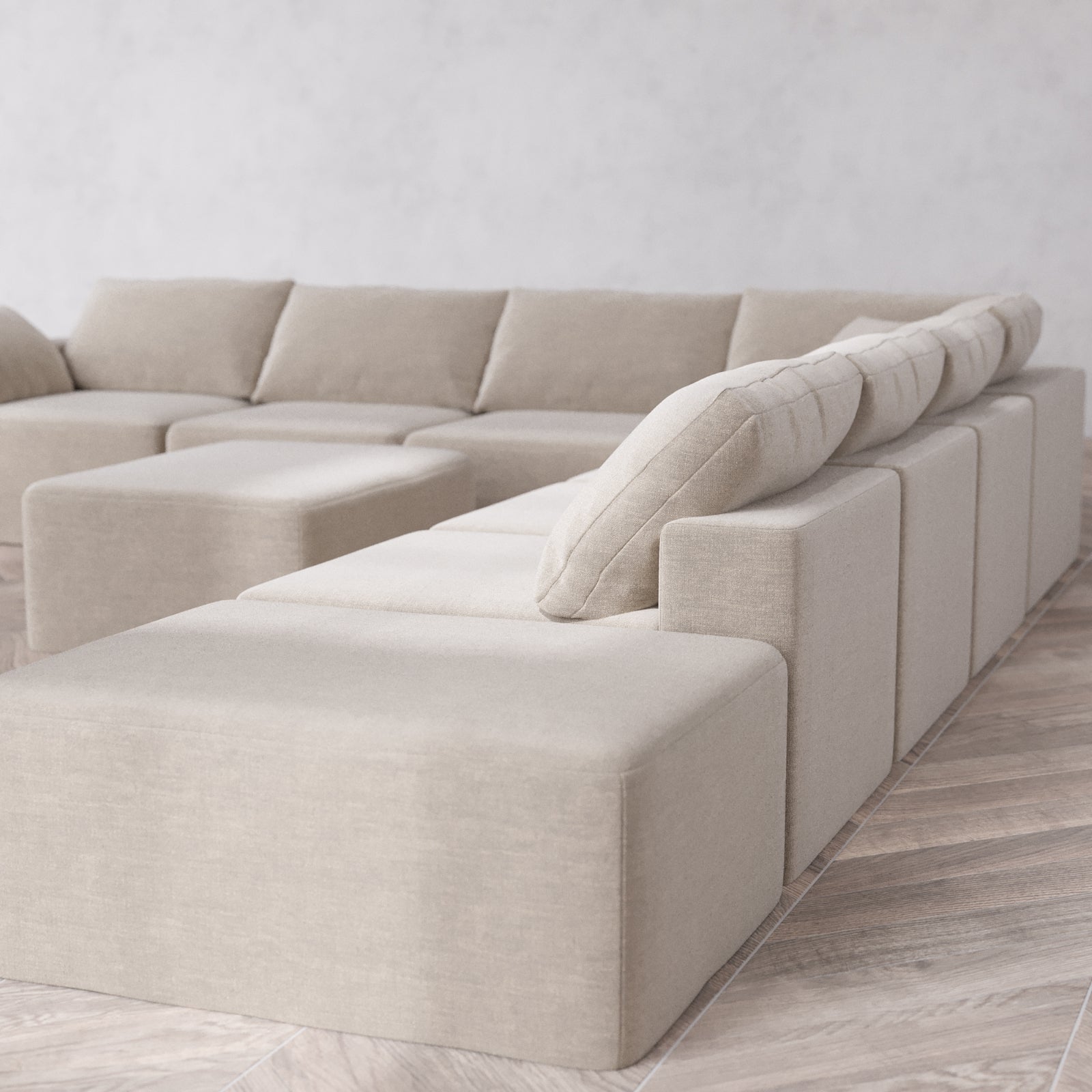 Slipcover Only - Modular Washable 8-Seater Open End Corner Sectional + Chaise Ottoman Cloud Sofa in Caraway | Left-Facing Arm