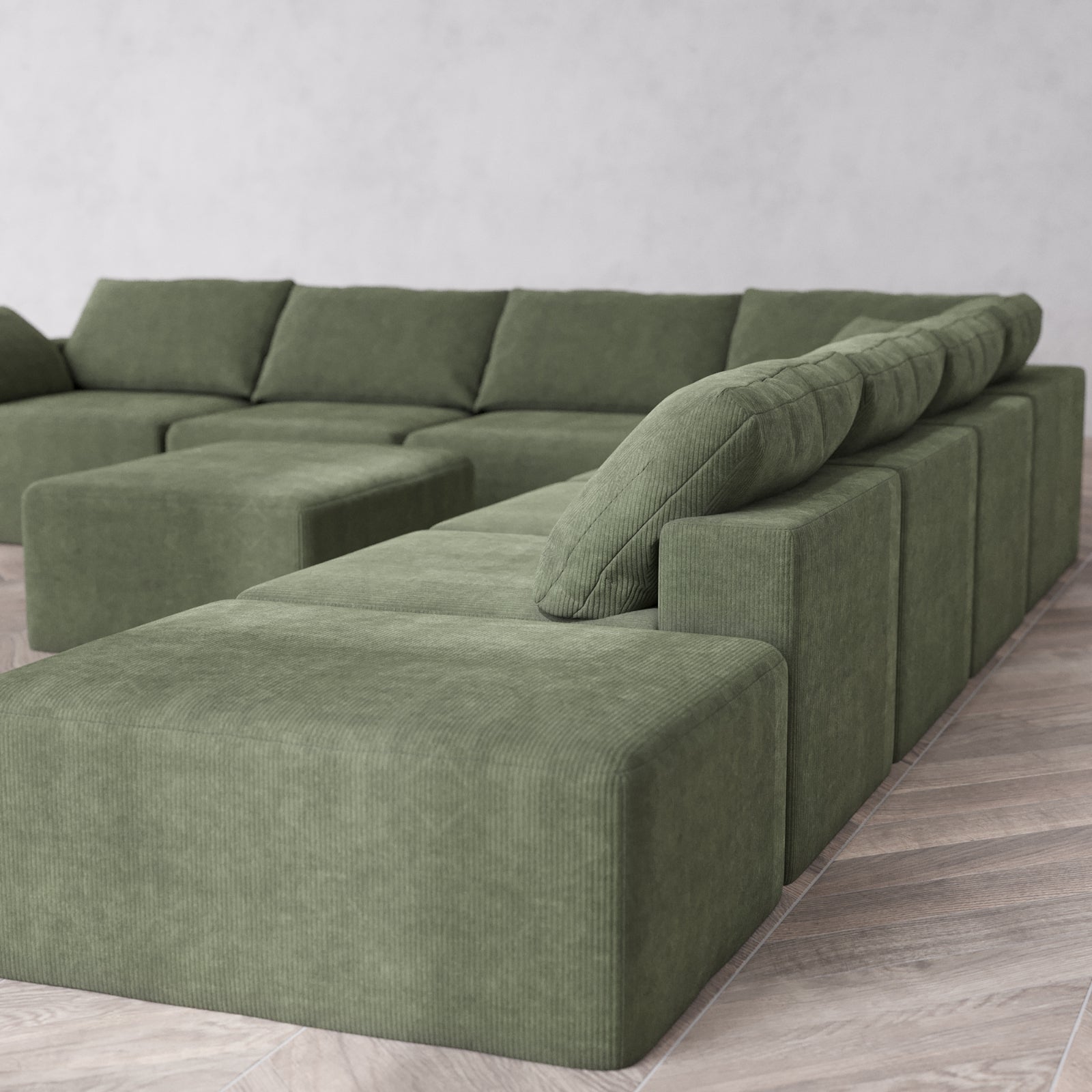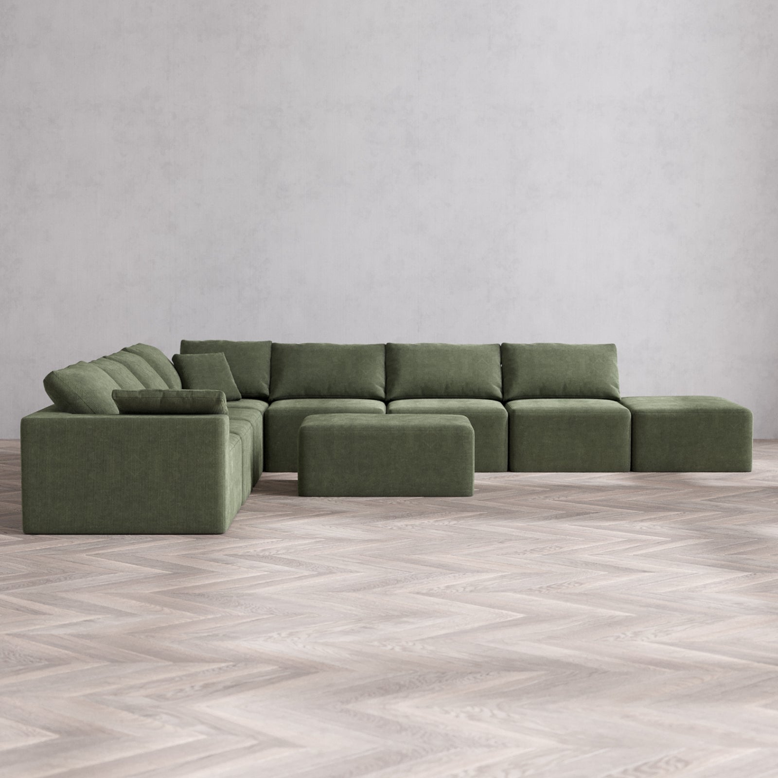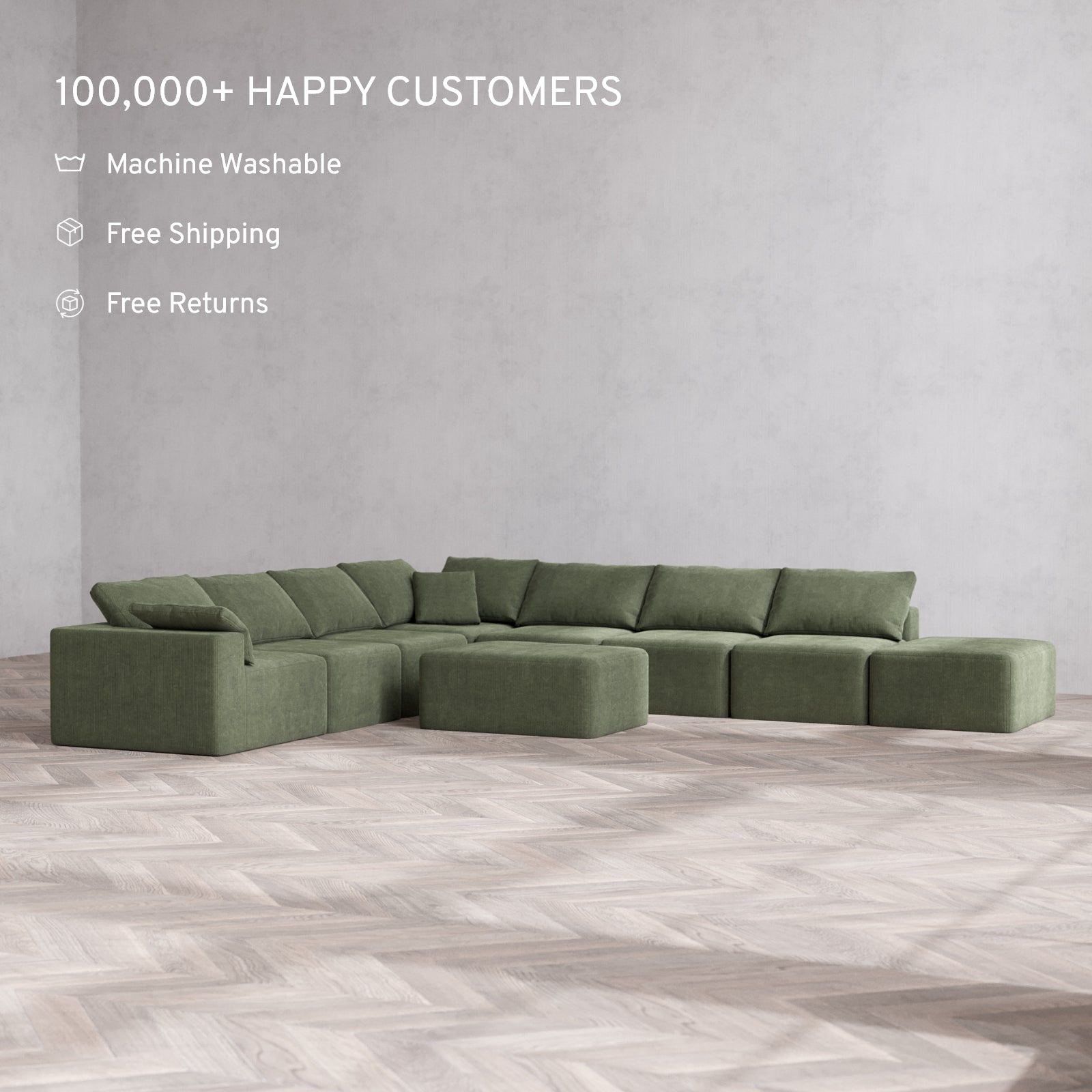 Slipcover Only - Modular Washable 8-Seater Open End Corner Sectional + Chaise Ottoman Cloud Sofa in Juniper | Left-Facing Arm