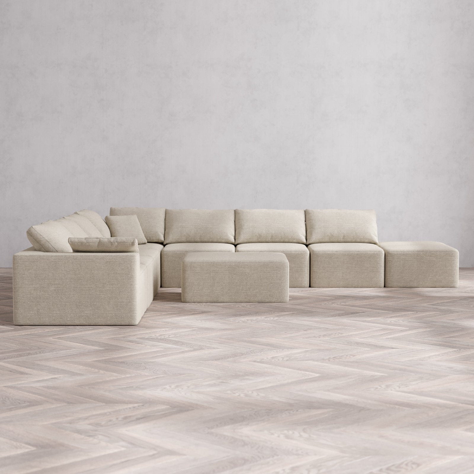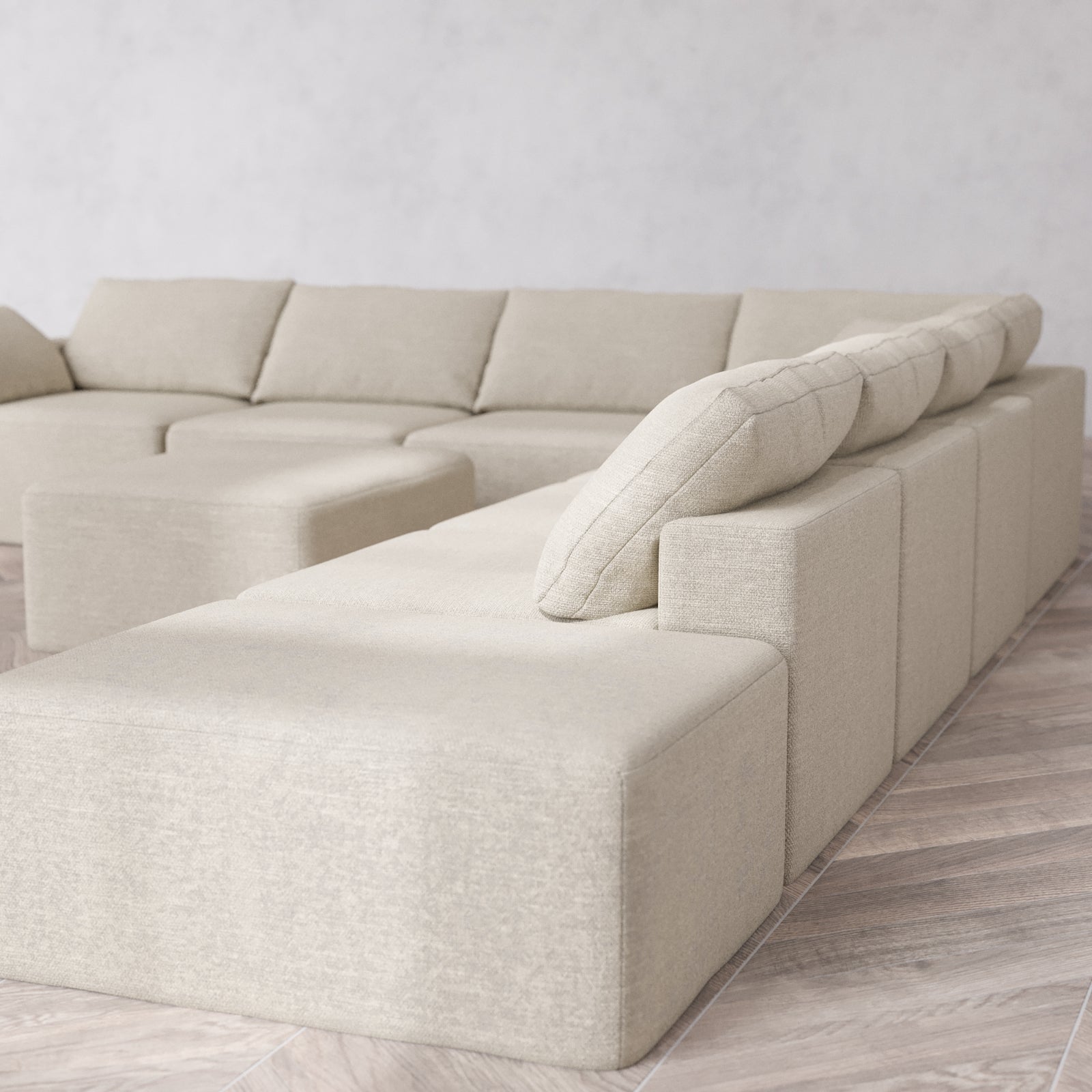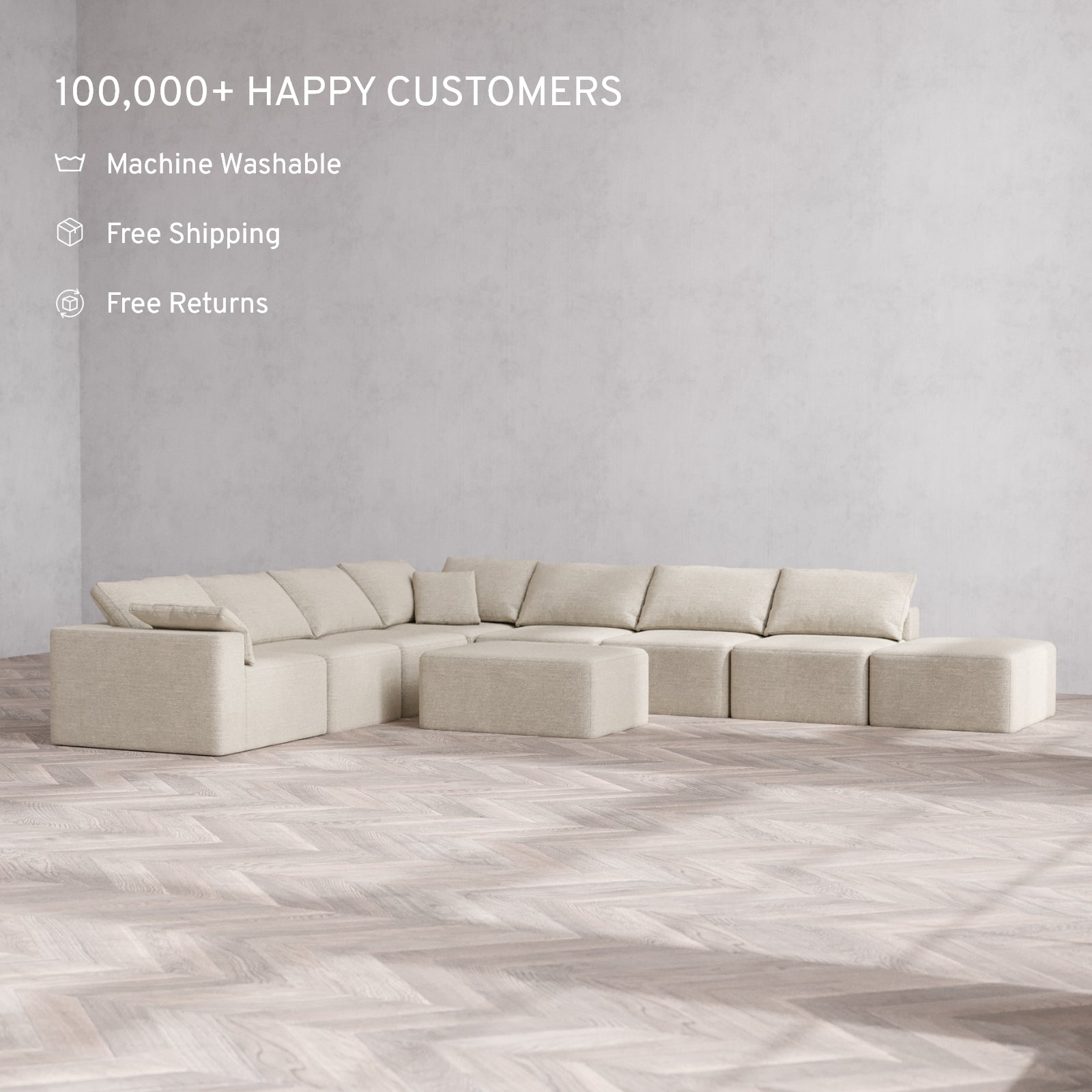 Slipcover Only - Modular Washable 8-Seater Open End Corner Sectional + Chaise Ottoman Cloud Sofa in Sandstone | Left-Facing Arm