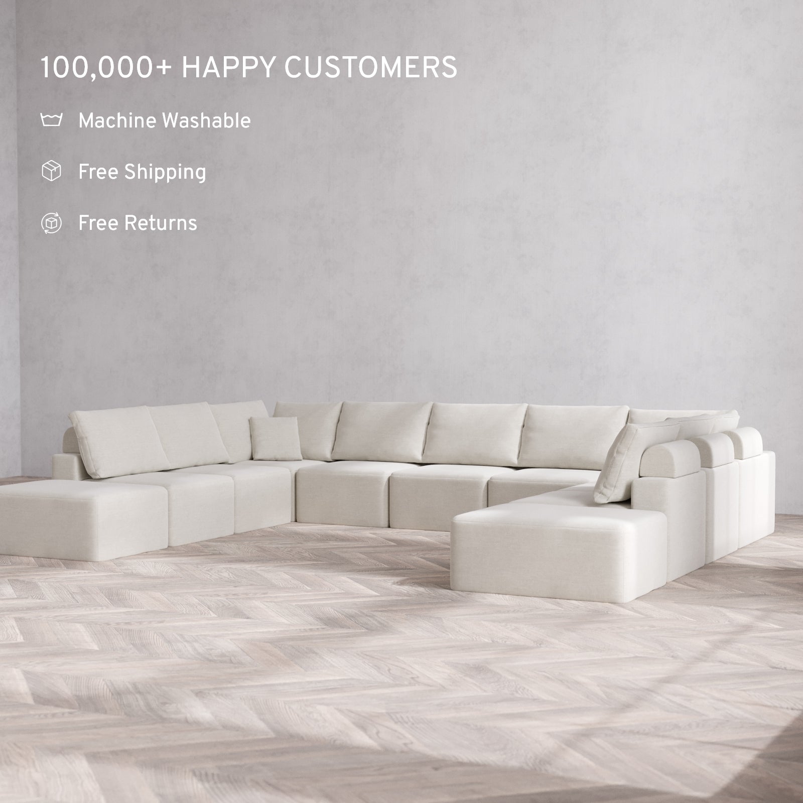 Machine Washable: Every piece of fabric—including the internal quilted duvet—is fully removable and machine washable. It’s the only Cloud-style sofa you can truly deep clean, effortlessly.
