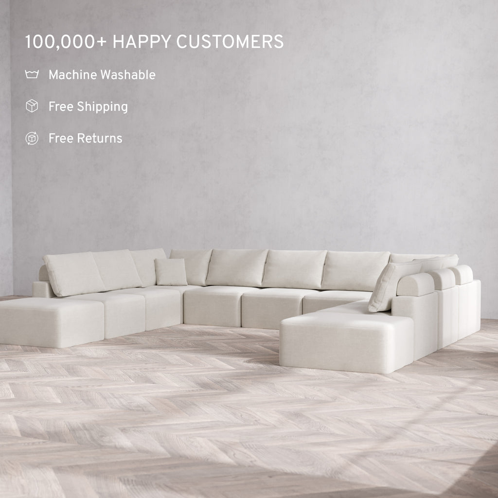 The Only Washable Cloud Sofa: With a waterproof frame and fabrics that resist pets, stains, and spills, this sofa is made to handle everyday messes. Our patent-pending covers are machine washable and fully interchangeable—buy extra sets to change up your look anytime.