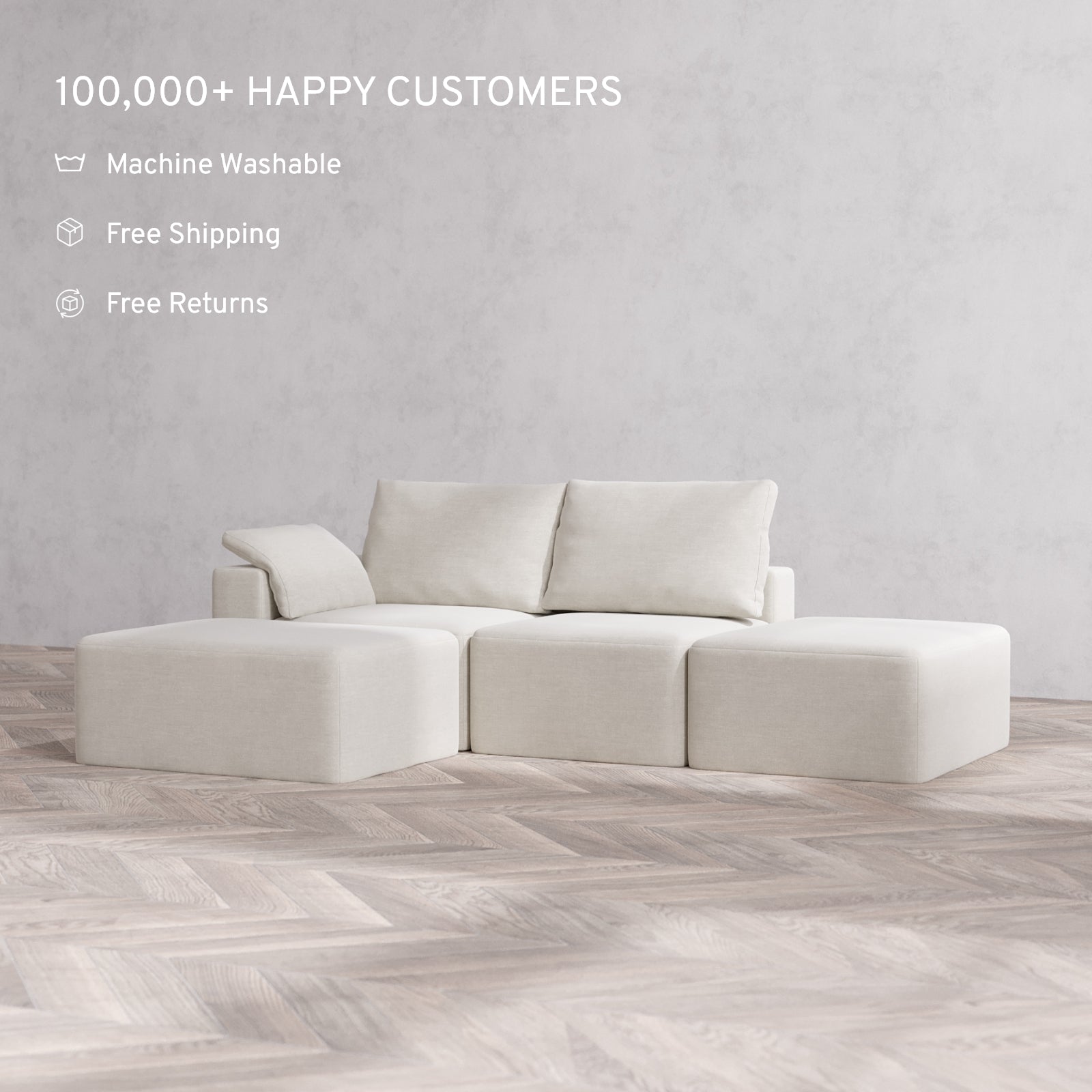 The Only Washable Cloud Sofa: With a waterproof frame and fabrics that resist pets, stains, and spills, this sofa is made to handle everyday messes. Our patent-pending covers are machine washable and fully interchangeable—buy extra sets to change up your look anytime.