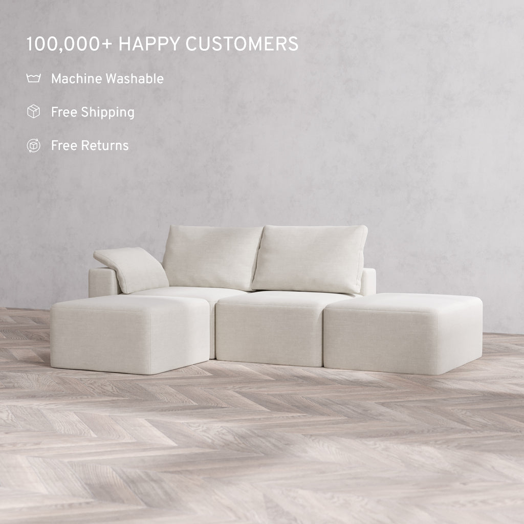 The Only Washable Cloud Sofa: With a waterproof frame and fabrics that resist pets, stains, and spills, this sofa is made to handle everyday messes. Our patent-pending covers are machine washable and fully interchangeable—buy extra sets to change up your look anytime.
