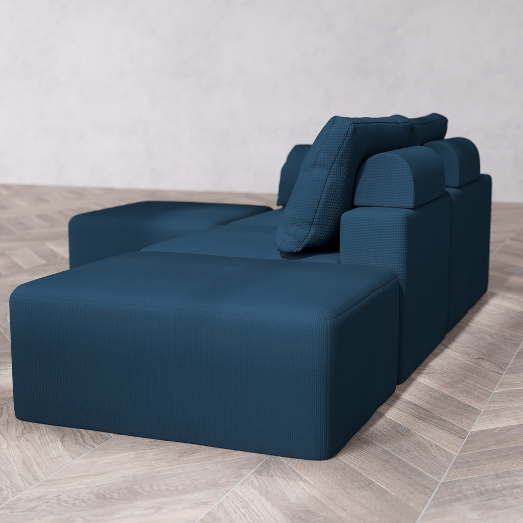 Modular Washable 2-Seater Open End Sectional Cloud + Bolster Sofa | Left-Facing Arm | Arden Weave in Lazuli