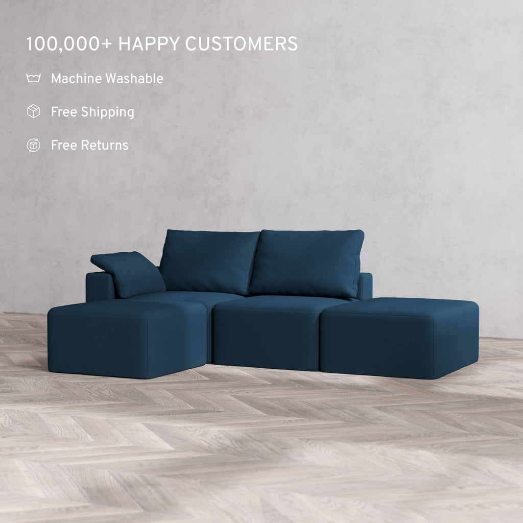 Machine Washable: Every piece of fabric—including the internal quilted duvet—is fully removable and machine washable. It’s the only Cloud-style sofa you can truly deep clean, effortlessly.