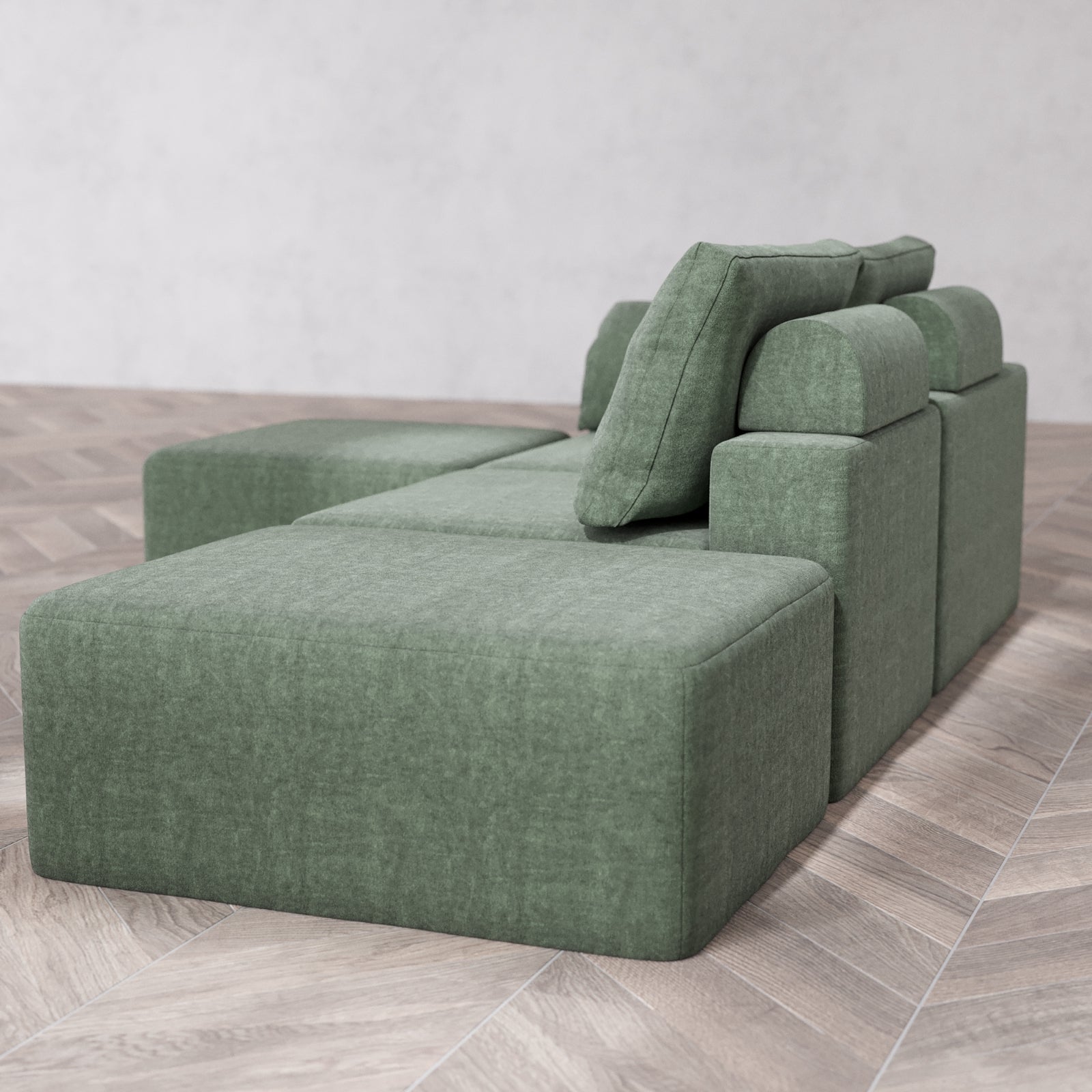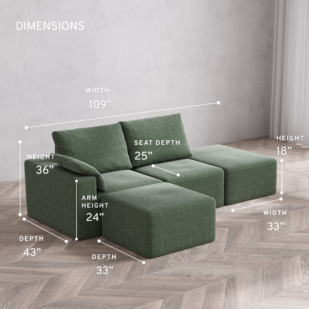 Modular Washable 2-Seater Open End Sectional Cloud + Bolster Sofa | Left-Facing Arm | Heirloom Velvet in Sage