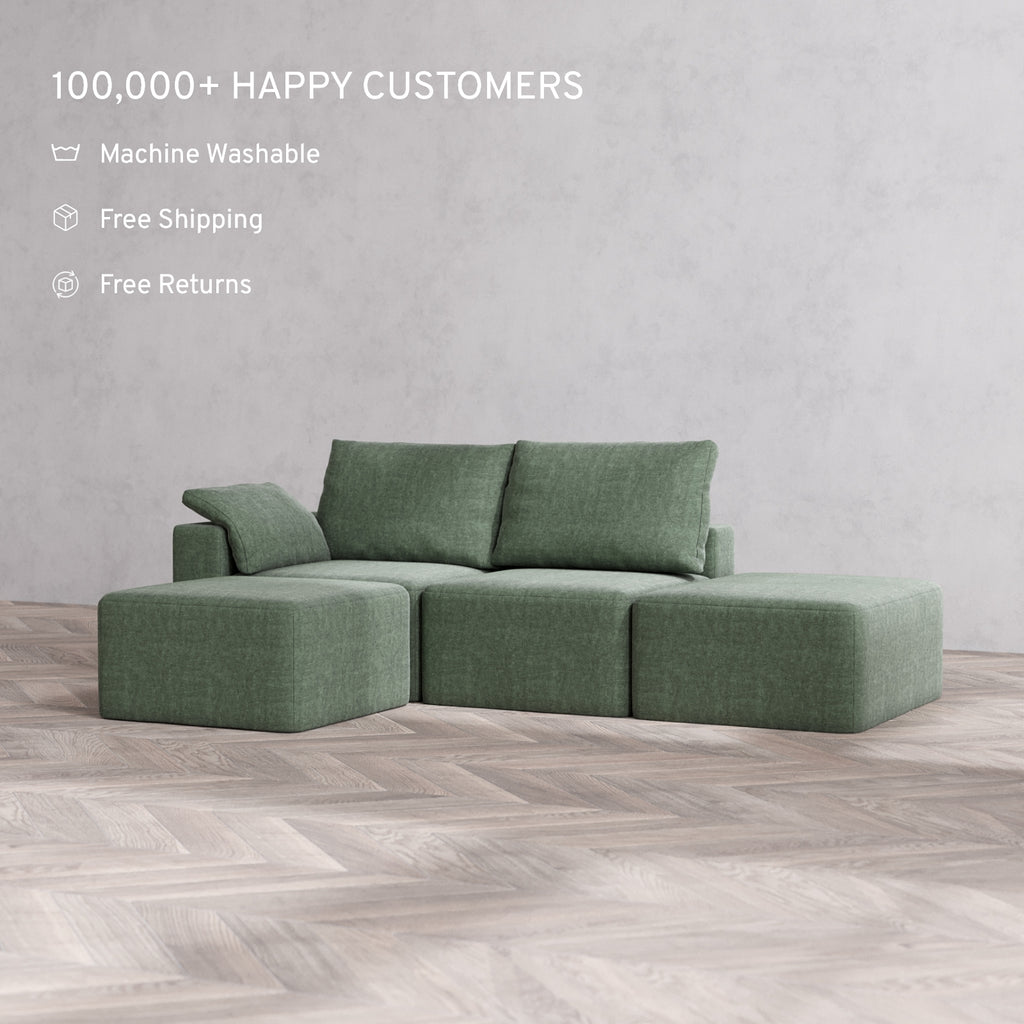 Machine Washable: Every piece of fabric—including the internal quilted duvet—is fully removable and machine washable. It’s the only Cloud-style sofa you can truly deep clean, effortlessly.