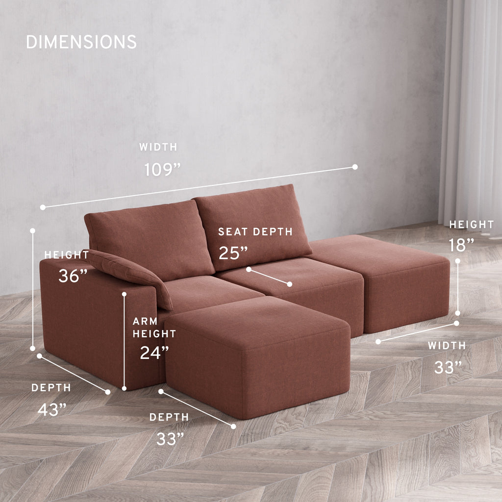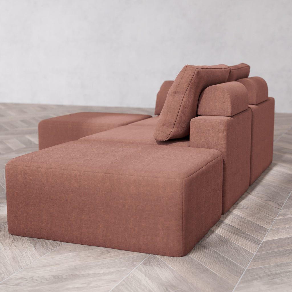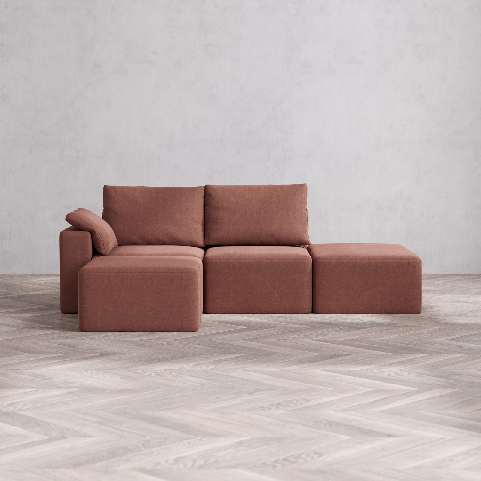 Modular Washable 2-Seater Open End Sectional Cloud + Bolster Sofa | Left-Facing Arm | Heirloom Velvet in Sumac