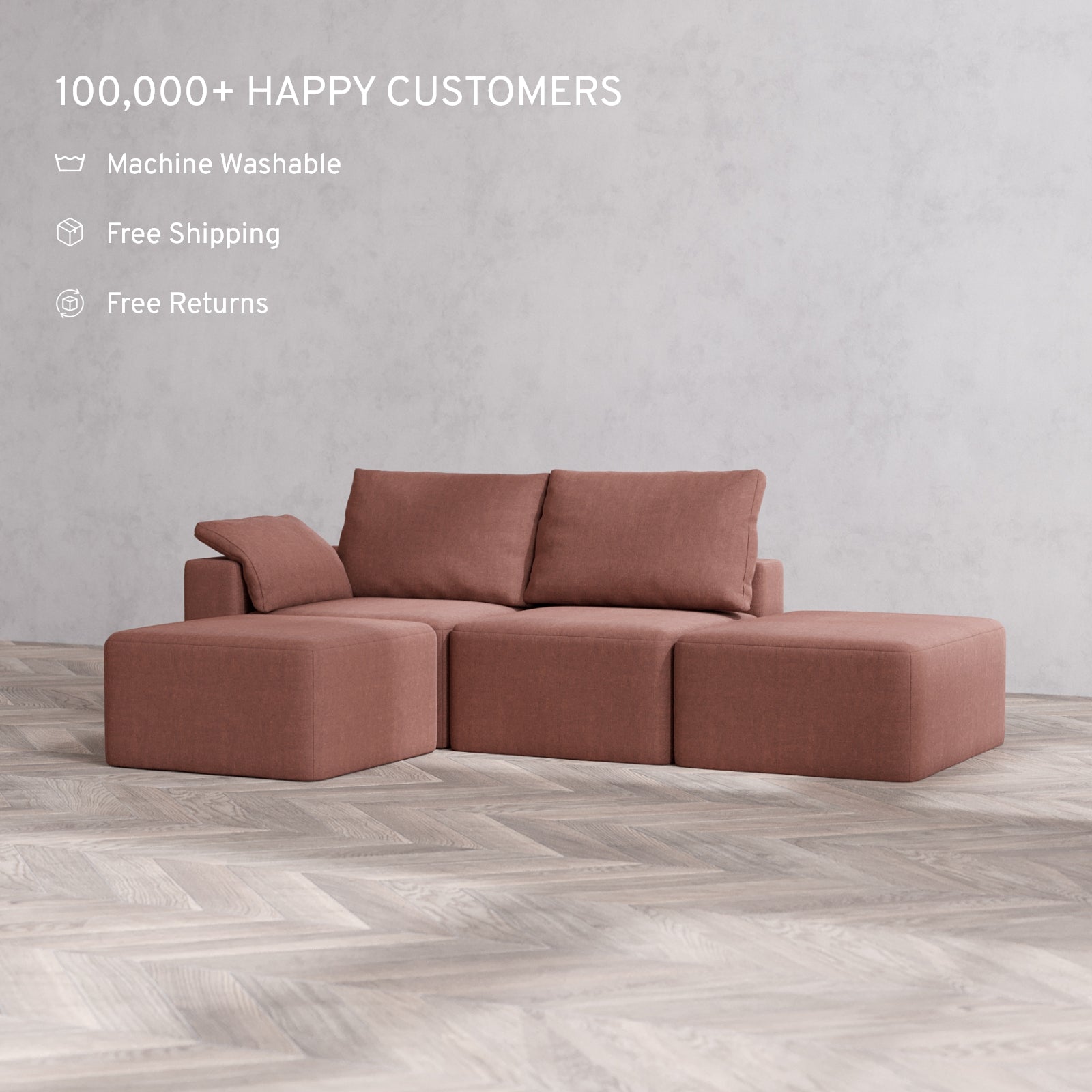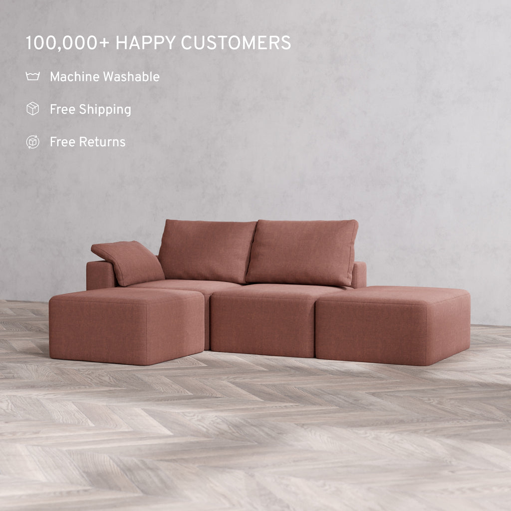 The Only Washable Cloud Sofa: With a waterproof frame and fabrics that resist pets, stains, and spills, this sofa is made to handle everyday messes. Our patent-pending covers are machine washable and fully interchangeable—buy extra sets to change up your look anytime.