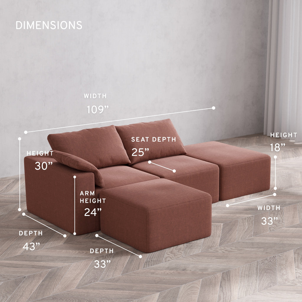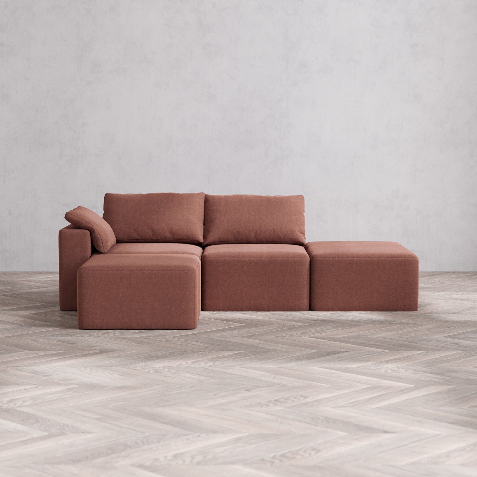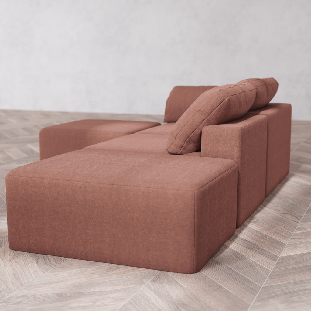 Modular Washable 2-Seater Open End Sectional Cloud Sofa | Left-Facing Arm | Heirloom Velvet in Sumac