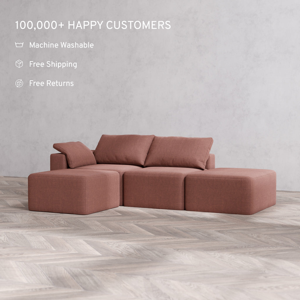 The Only Washable Cloud Sofa: With a waterproof frame and fabrics that resist pets, stains, and spills, this sofa is made to handle everyday messes. Our patent-pending covers are machine washable and fully interchangeable—buy extra sets to change up your look anytime.