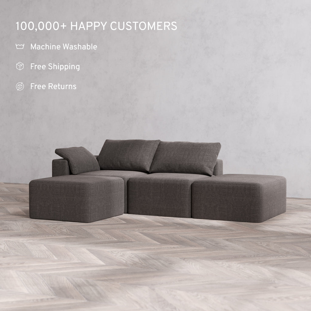 The Only Washable Cloud Sofa: With a waterproof frame and fabrics that resist pets, stains, and spills, this sofa is made to handle everyday messes. Our patent-pending covers are machine washable and fully interchangeable—buy extra sets to change up your look anytime.