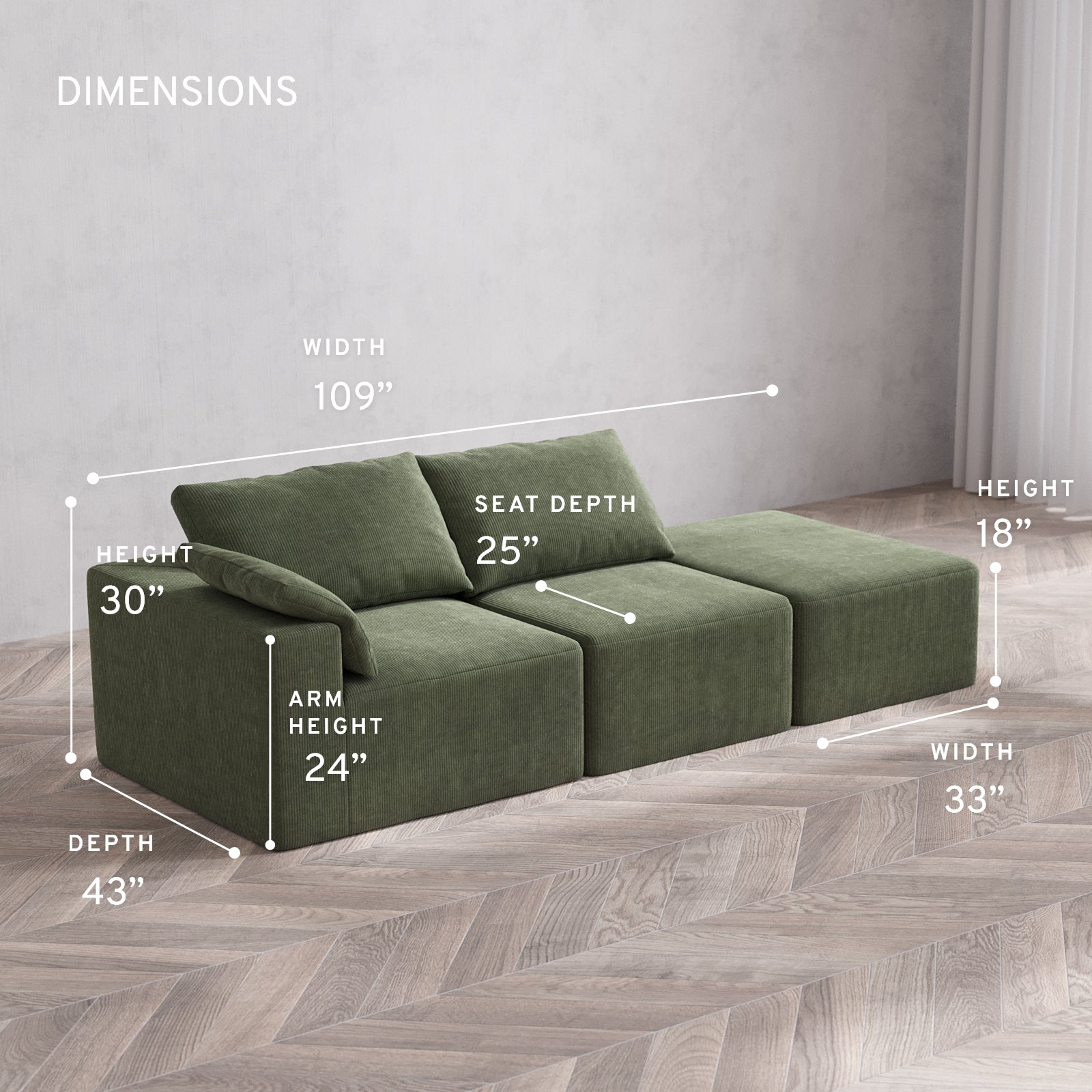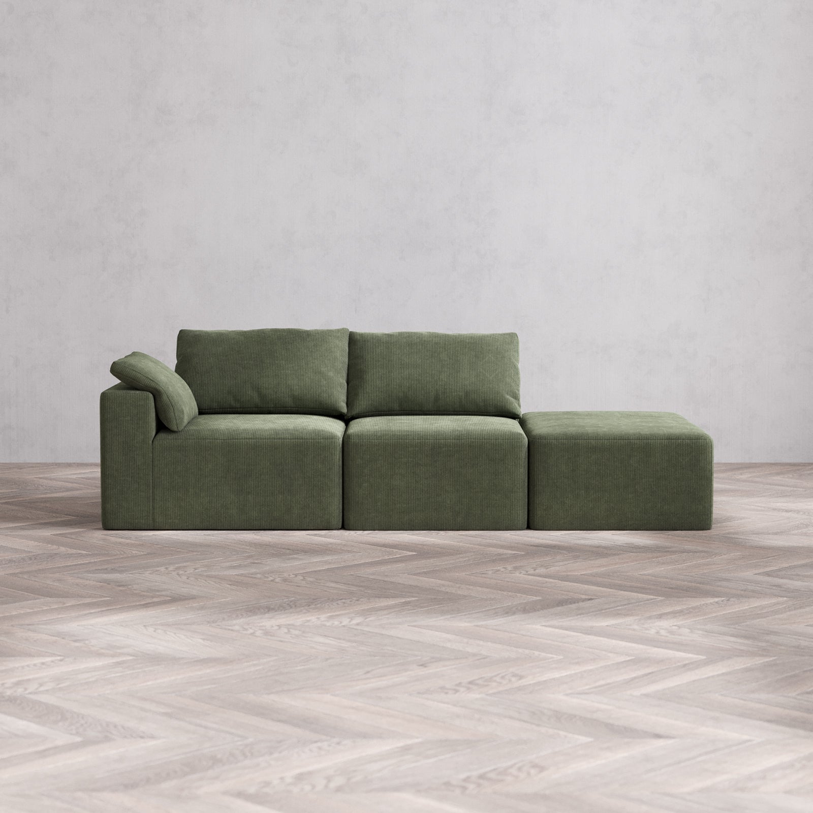 Modular Washable 2-Seater Open End Cloud Sofa | Left-Facing Arm | Luxe Corduroy in Juniper