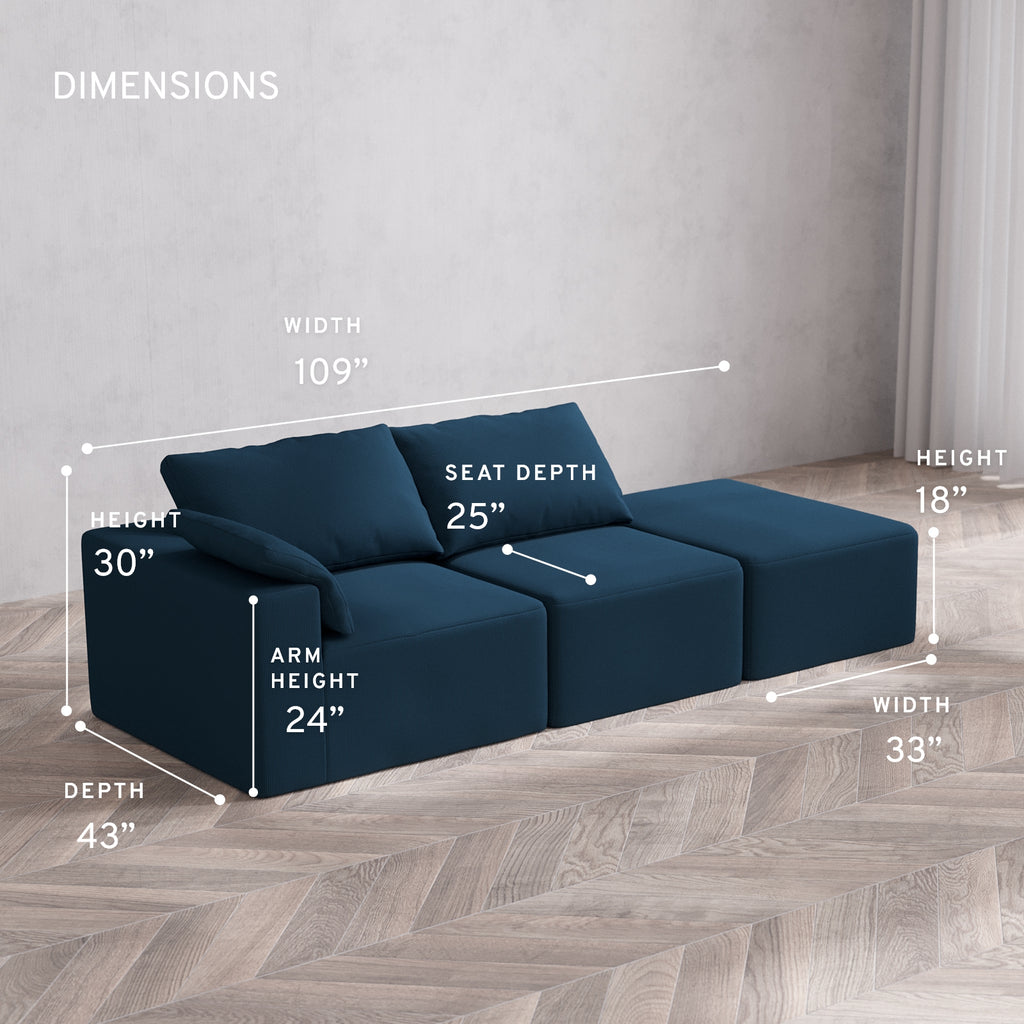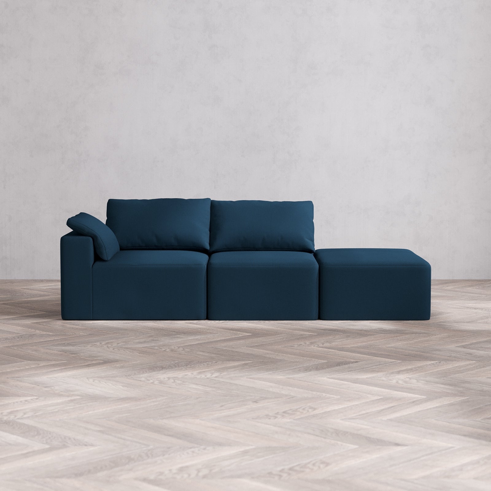 Modular Washable 2-Seater Open End Cloud Sofa | Left-Facing Arm | Arden Weave in Lazuli