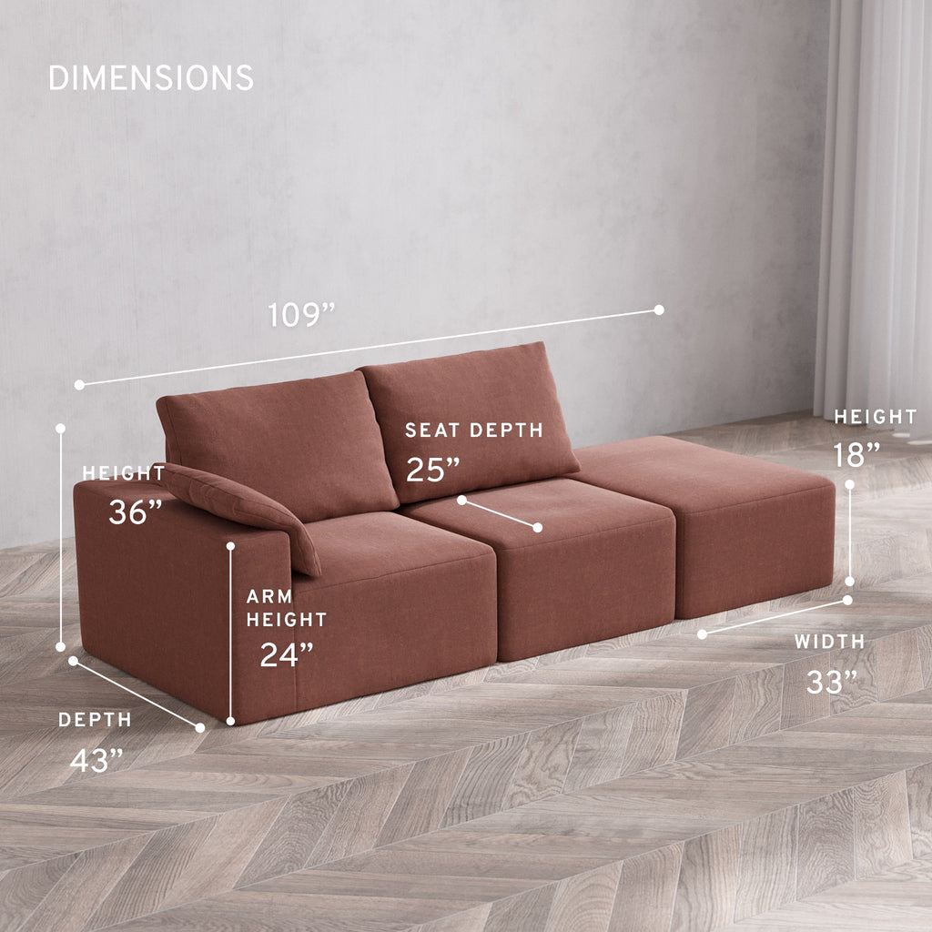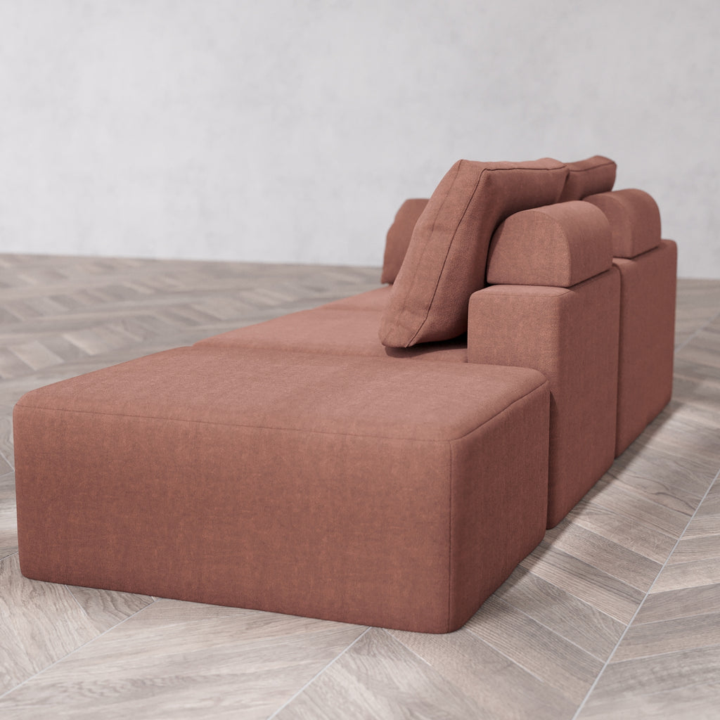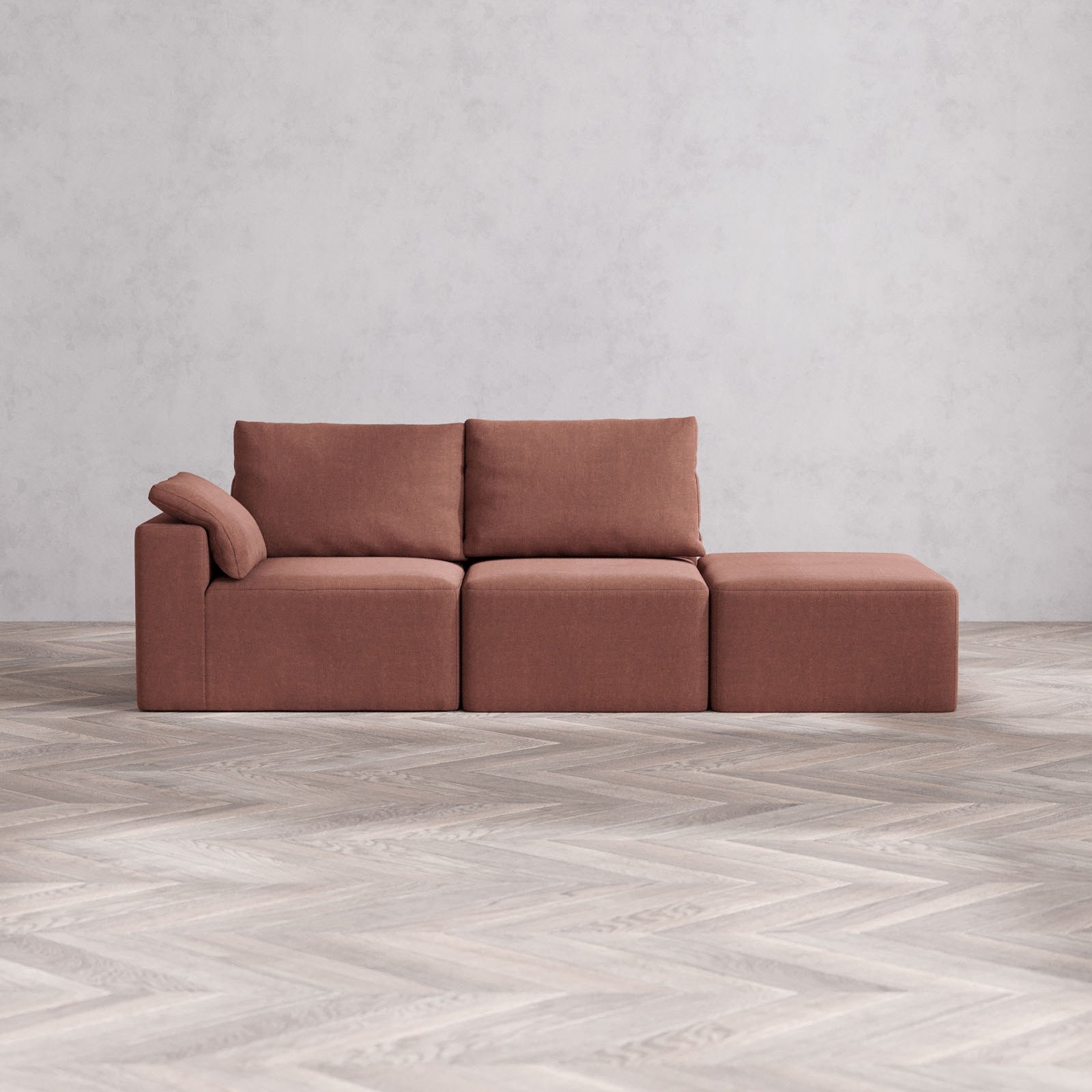 Modular Washable 2-Seater Open End Cloud + Bolster Sofa | Left-Facing Arm | Heirloom Velvet in Sumac