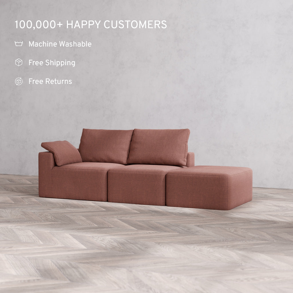 The Only Washable Cloud Sofa: With a waterproof frame and fabrics that resist pets, stains, and spills, this sofa is made to handle everyday messes. Our patent-pending covers are machine washable and fully interchangeable—buy extra sets to change up your look anytime.