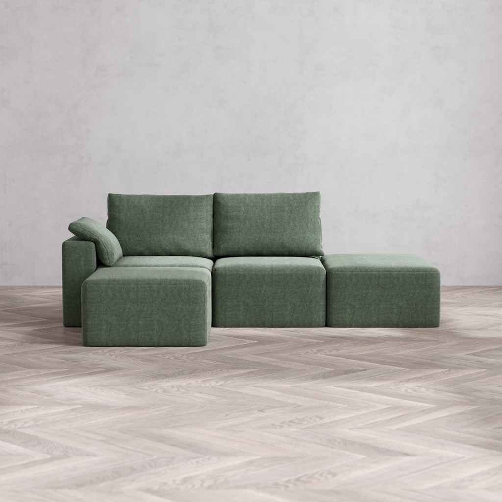 Modular Washable 2-Seater Cloud + Bolster Sofa + Ottoman | Heirloom Velvet in Sage