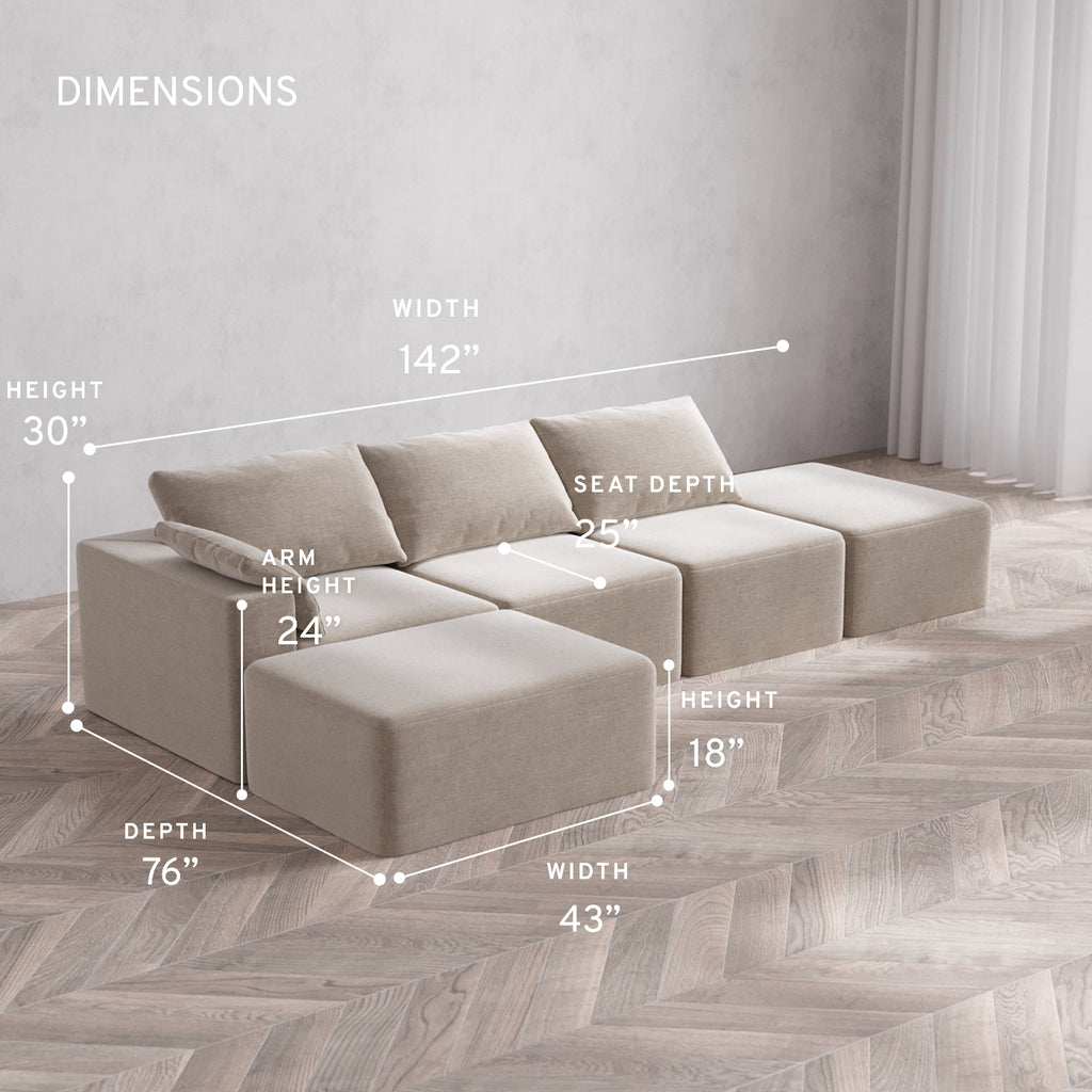 Machine Washable: Every piece of fabric—including the internal quilted duvet—is fully removable and machine washable. It’s the only Cloud-style sofa you can truly deep clean, effortlessly.