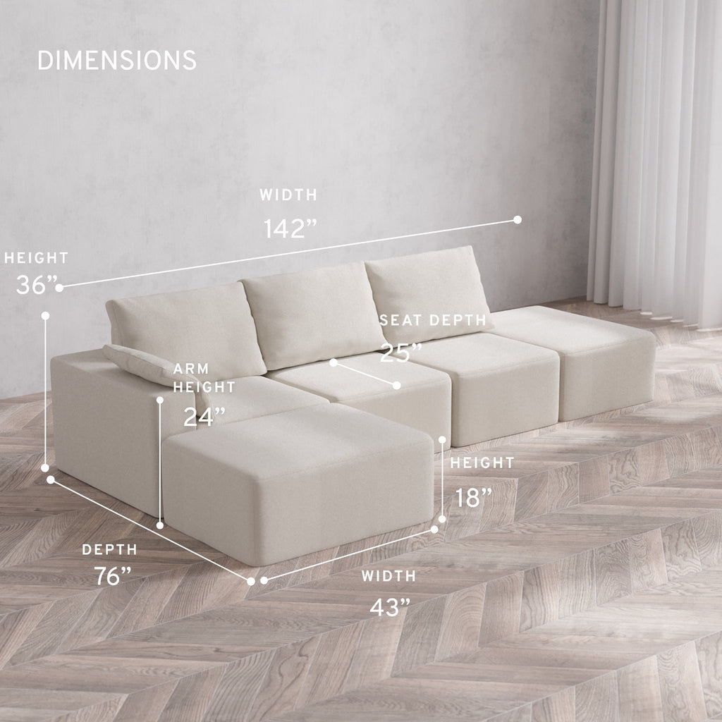 Modular Washable 3-Seater Open End Chaise Sectional Cloud + Bolster Sofa | Left-Facing Arm | Lux Weave in Pearl