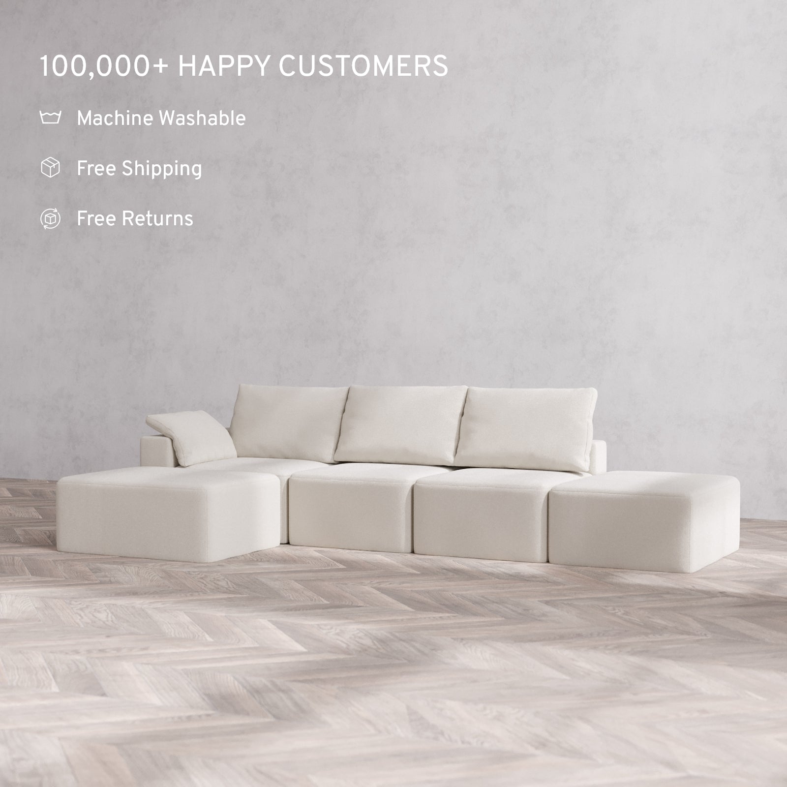 The Only Washable Cloud Sofa: With a waterproof frame and fabrics that resist pets, stains, and spills, this sofa is made to handle everyday messes. Our patent-pending covers are machine washable and fully interchangeable—buy extra sets to change up your look anytime.