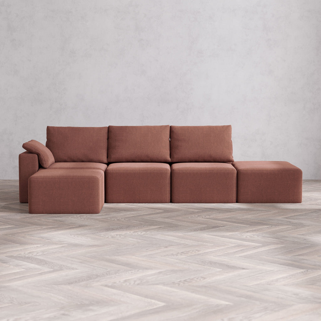 Modular Washable 3-Seater Open End Chaise Sectional Cloud + Bolster Sofa | Left-Facing Arm | Heirloom Velvet in Sumac