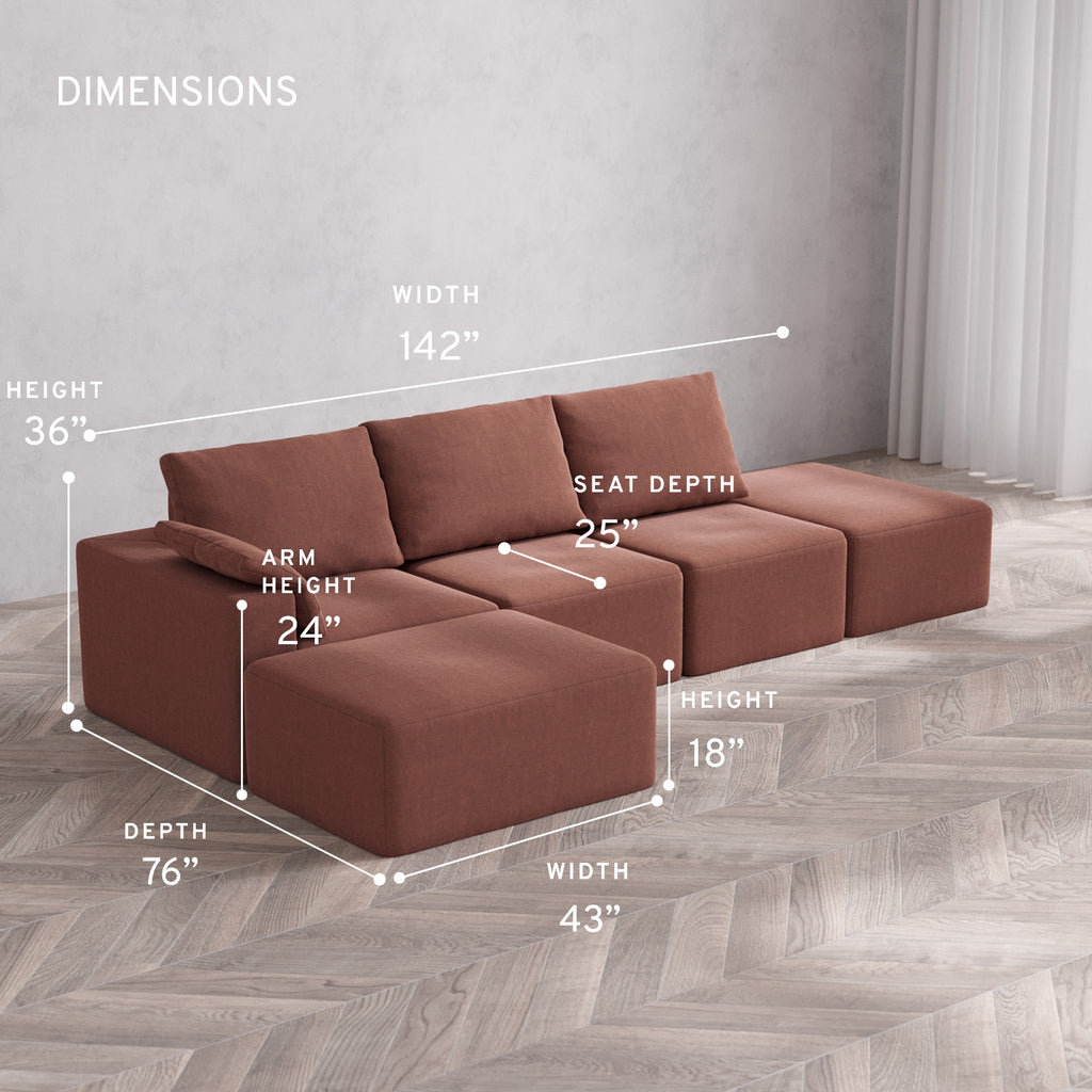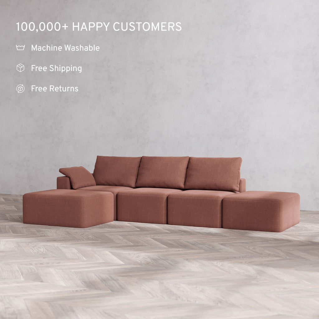 Machine Washable: Every piece of fabric—including the internal quilted duvet—is fully removable and machine washable. It’s the only Cloud-style sofa you can truly deep clean, effortlessly.
