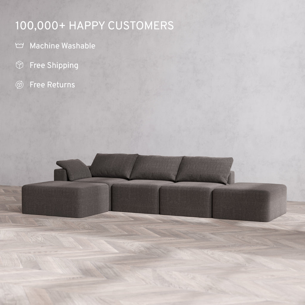 The Only Washable Cloud Sofa: With a waterproof frame and fabrics that resist pets, stains, and spills, this sofa is made to handle everyday messes. Our patent-pending covers are machine washable and fully interchangeable—buy extra sets to change up your look anytime.